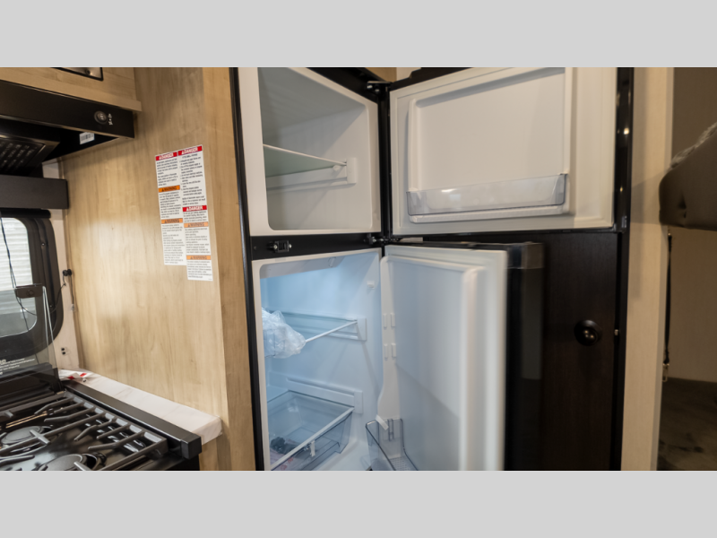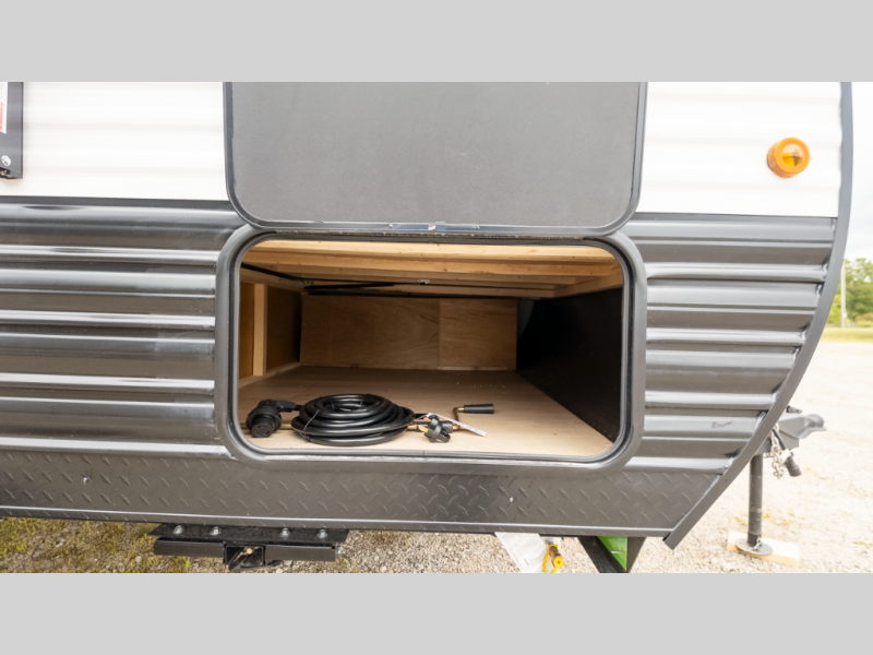The whole family can sleep comfortably in this travel trailer! It has a set of bunk beds for the kids to sleep on, and you can sleep comfortably on the front queen bed with overhead cabinets and a shelf. There is even an exterior storage plus door that accesses the storage space under the bottom bunk. The chef will enjoy preparing their best home cooked meals either indoors with the high output cooktop or at the outside mini kitchen while staying protected by the 12' power awning!