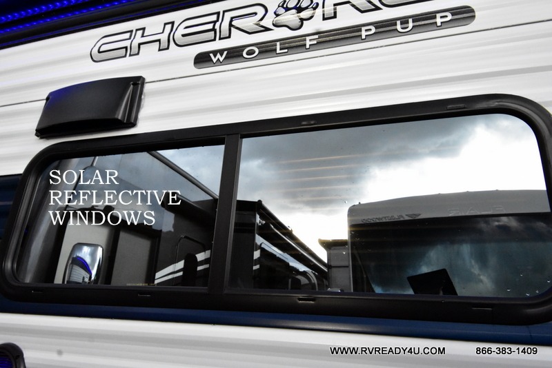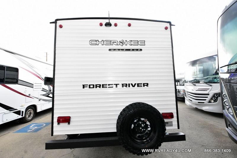 Each one of these Forest River Cherokee Wolf Pup travel trailers and toy hauler are lightweight and easy to tow! They are fully self-contained with ample tank capacities, an abundance of storage space, and filled with at home amenities. The full bath and kitchen amenities will make life at the campground easier than ever, and the outdoor patio awning will provide an inviting outdoor space!