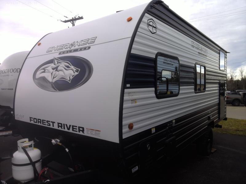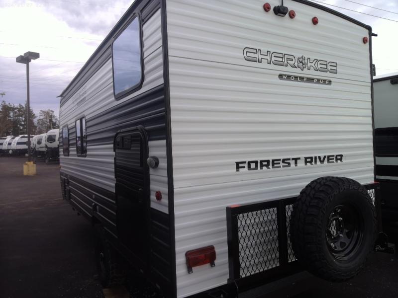 Each one of these Forest River Cherokee Wolf Pup travel trailers and toy hauler are lightweight and easy to tow! They are fully self-contained with ample tank capacities, an abundance of storage space, and filled with at home amenities. The full bath and kitchen amenities will make life at the campground easier than ever, and the outdoor patio awning will provide an inviting outdoor space!