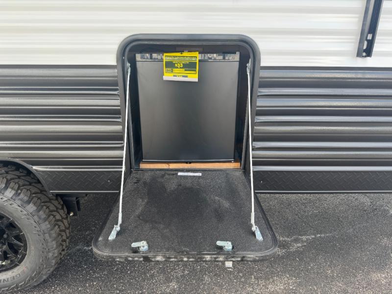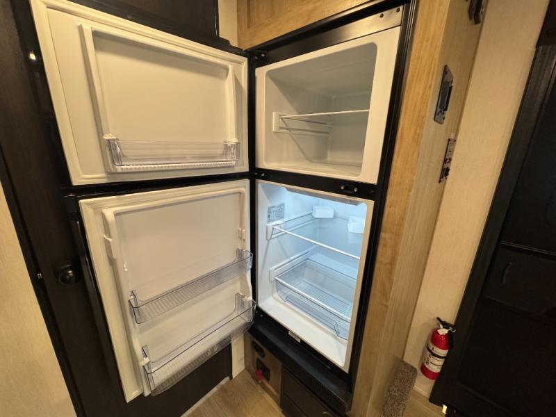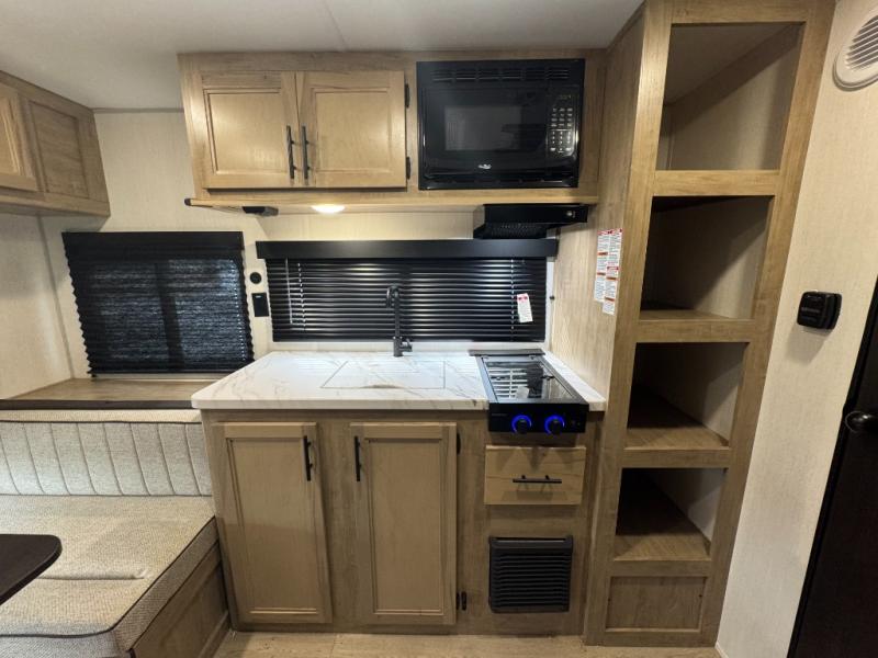 Convenient camping is found with this lightweight travel trailer! Once you arrive at your destination, put out the 15' power awning, then make lunch on the exterior mini kitchen. Inside, you can dine at the booth dinette, freshen up in the tub/shower, and sleep soundly on the queen bed in the master bedroom. And you're sure to find plenty of storage spaces both inside and outside, including a rear storage rack!