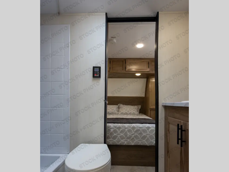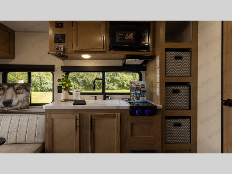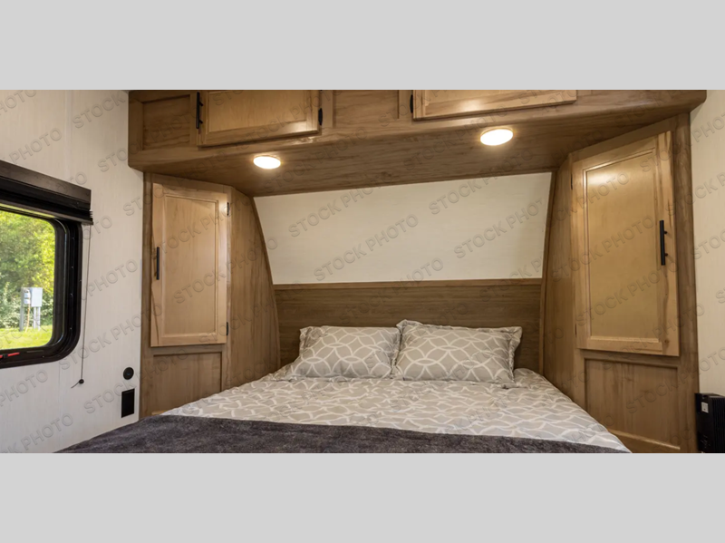 Convenient camping is found with this lightweight travel trailer! Once you arrive at your destination, put out the 15' power awning, then make lunch on the exterior mini kitchen. Inside, you can dine at the booth dinette, freshen up in the tub/shower, and sleep soundly on the queen bed in the master bedroom. And you're sure to find plenty of storage spaces both inside and outside, including a rear storage rack!