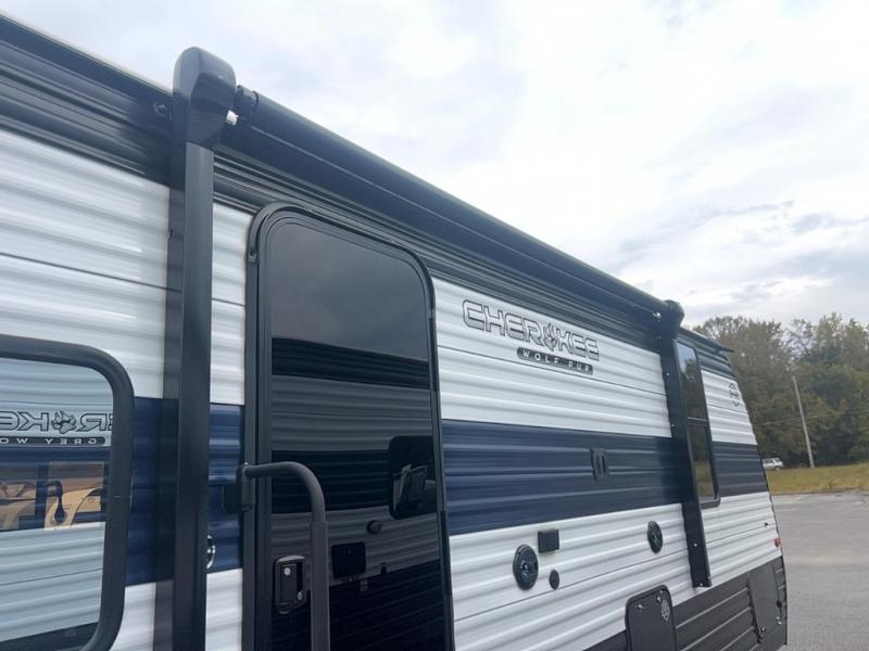 Each one of these Forest River Cherokee Wolf Pup travel trailers and toy hauler are lightweight and easy to tow! They are fully self-contained with ample tank capacities, an abundance of storage space, and filled with at home amenities. The full bath and kitchen amenities will make life at the campground easier than ever, and the outdoor patio awning will provide an inviting outdoor space!