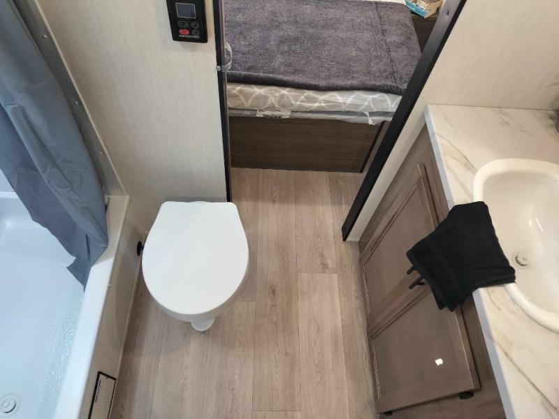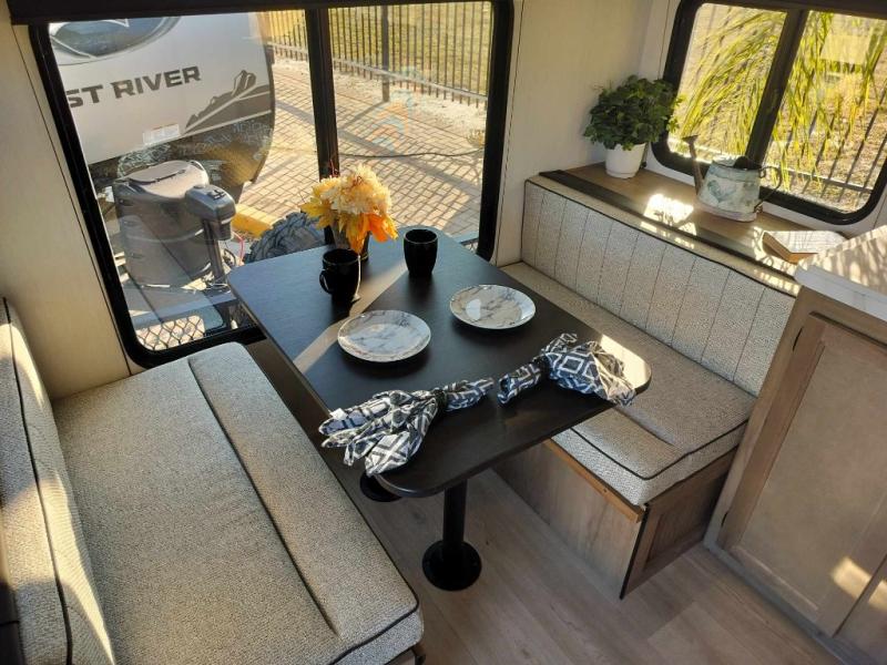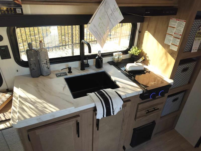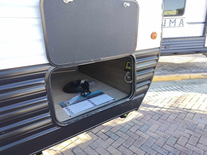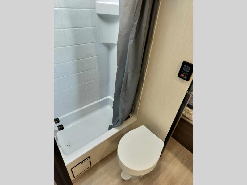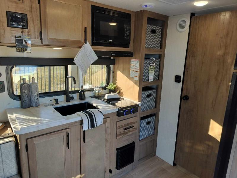 Convenient camping is found with this lightweight travel trailer! Once you arrive at your destination, put out the 15' power awning, then make lunch on the exterior mini kitchen. Inside, you can dine at the booth dinette, freshen up in the tub/shower, and sleep soundly on the queen bed in the master bedroom. And you're sure to find plenty of storage spaces both inside and outside, including a rear storage rack!