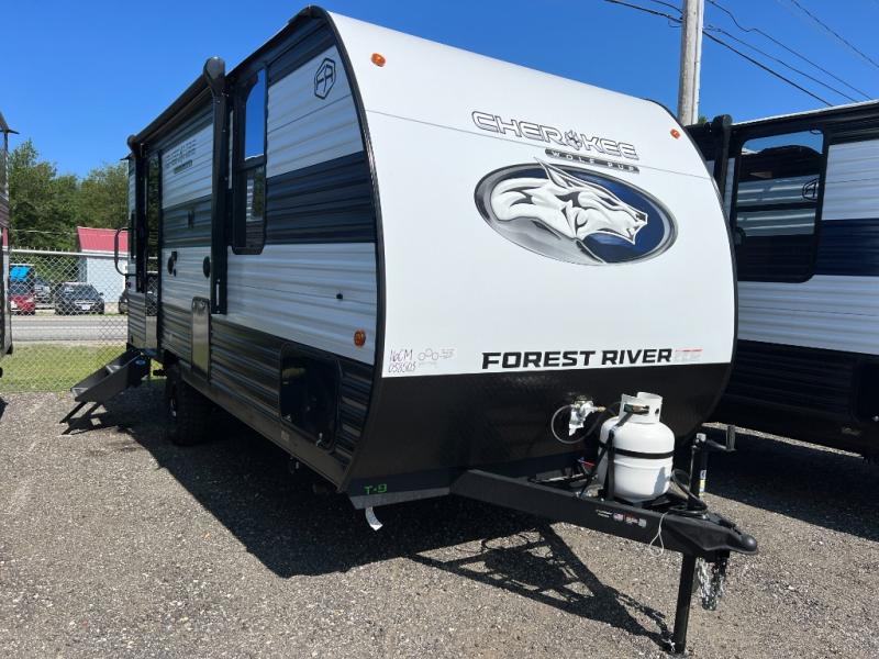 Each one of these Forest River Cherokee Wolf Pup travel trailers are lightweight and easy to tow! They are fully self contained with ample tank capacities, an abundance of storage space, and filled with at home amenities. The aerodynamic smooth radius front profile, the Power Gear frame technology, and the space saver rail design make them easier to maneuver. You will also appreciate the seamless roofing membrane with heat reflectivity to keep the sun from making your unit a hot box. The tongue and groove plywood flooring will hold up for years of fun and the USB charging stations help to keep your electronics at 100% while you're away. Come find the best model for you today!