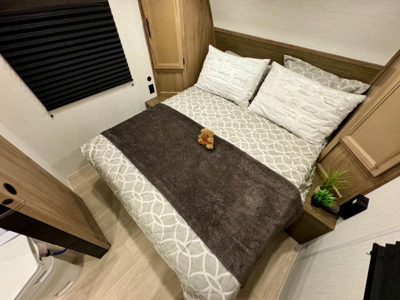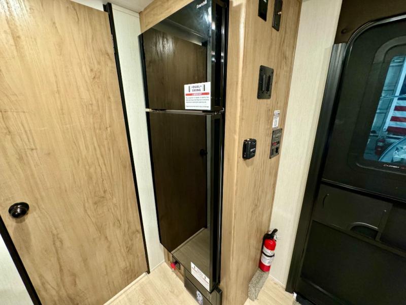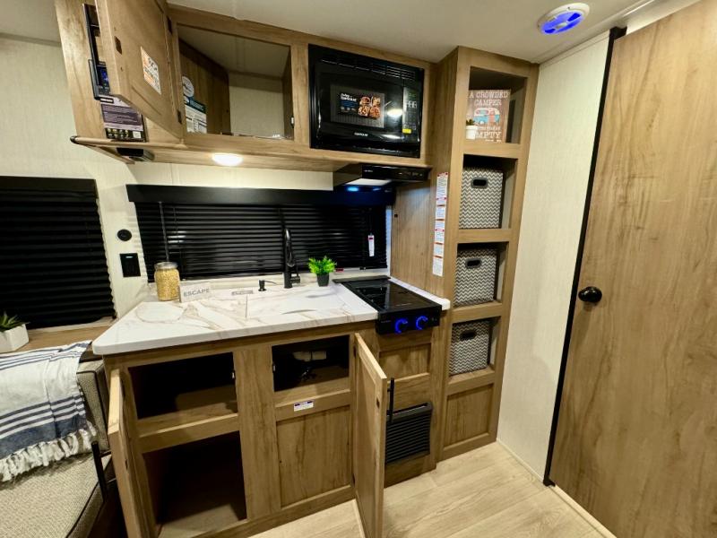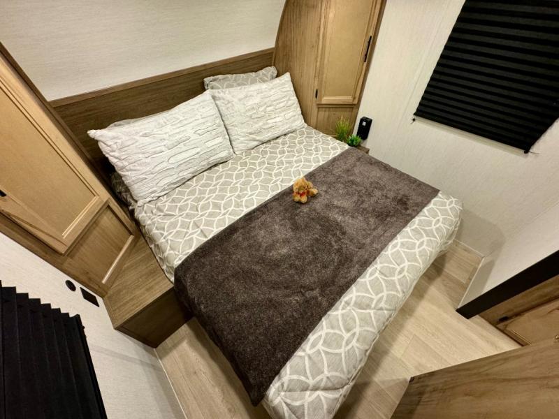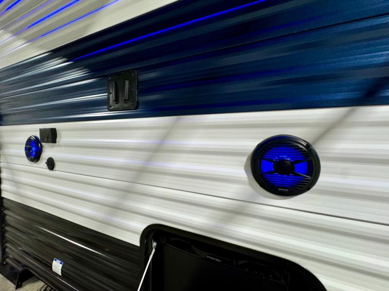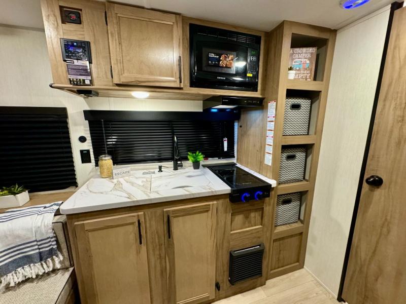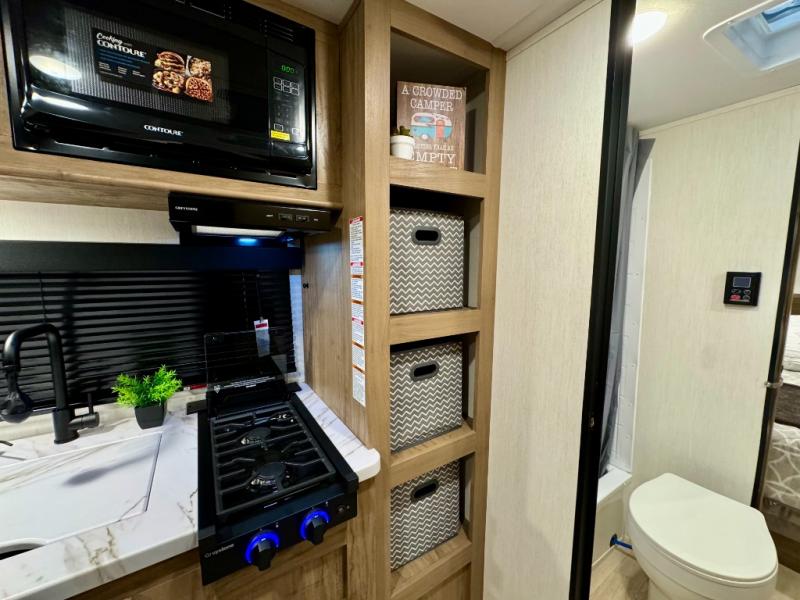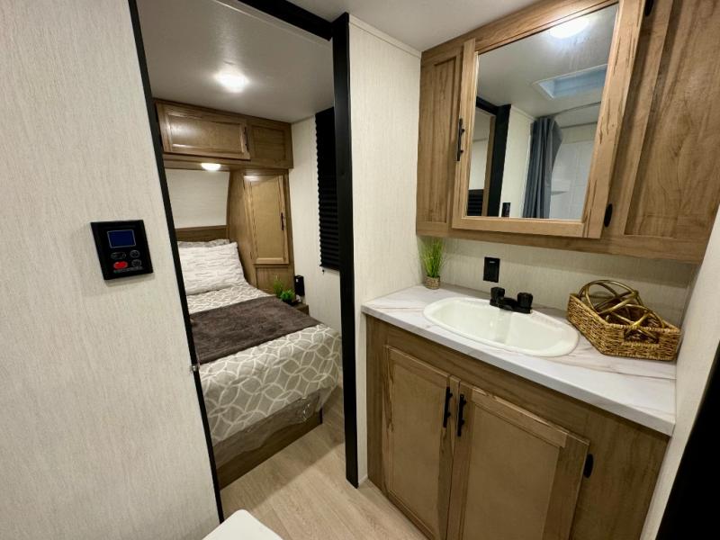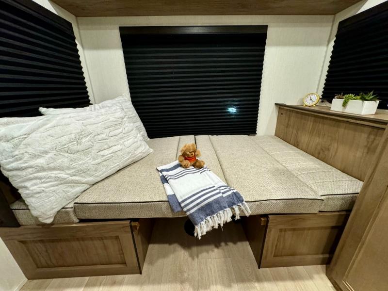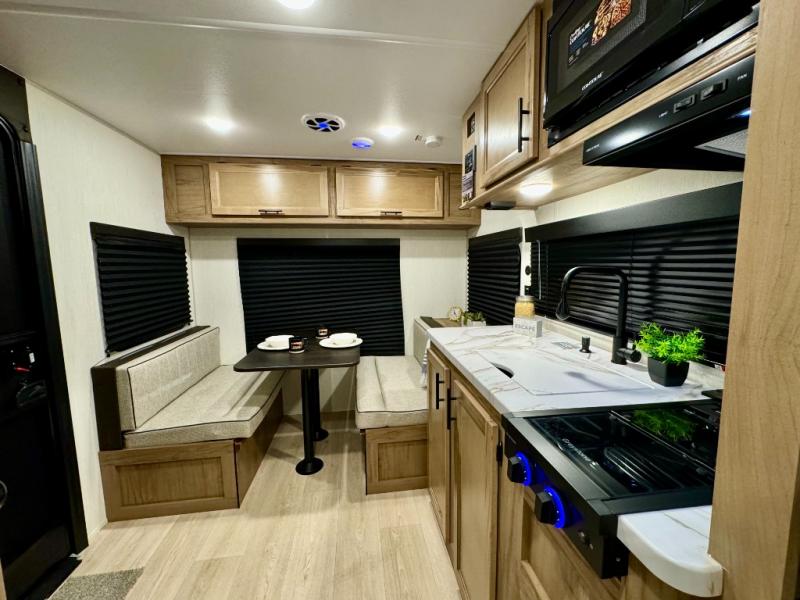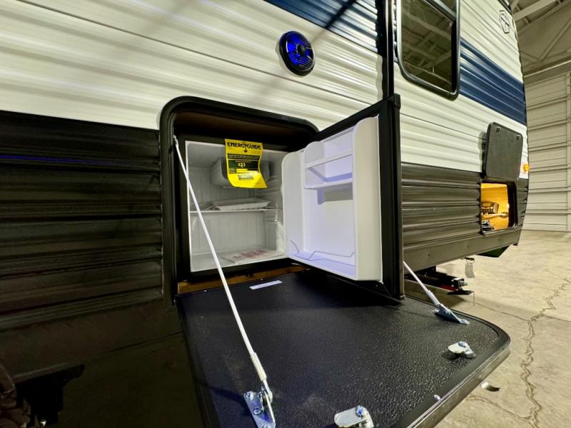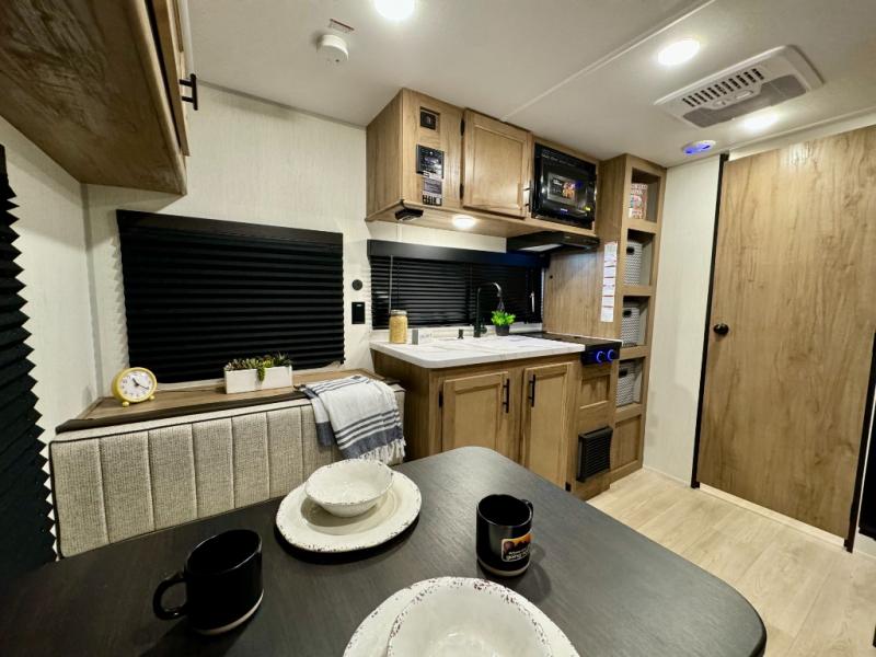 Convenient camping is found with this lightweight travel trailer! Once you arrive at your destination, put out the 15' power awning, then make lunch on the exterior mini kitchen. Inside, you can dine at the booth dinette, freshen up in the tub/shower, and sleep soundly on the queen bed in the master bedroom. And you're sure to find plenty of storage spaces both inside and outside, including a rear storage rack!