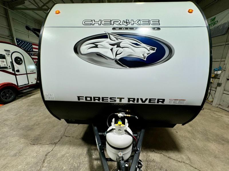 Each one of these Forest River Cherokee Wolf Pup travel trailers are lightweight and easy to tow! They are fully self contained with ample tank capacities, an abundance of storage space, and filled with at home amenities. The aerodynamic smooth radius front profile, the Power Gear frame technology, and the space saver rail design make them easier to maneuver. You will also appreciate the seamless roofing membrane with heat reflectivity to keep the sun from making your unit a hot box. The tongue and groove plywood flooring will hold up for years of fun and the USB charging stations help to keep your electronics at 100% while you're away. Come find the best model for you today!
