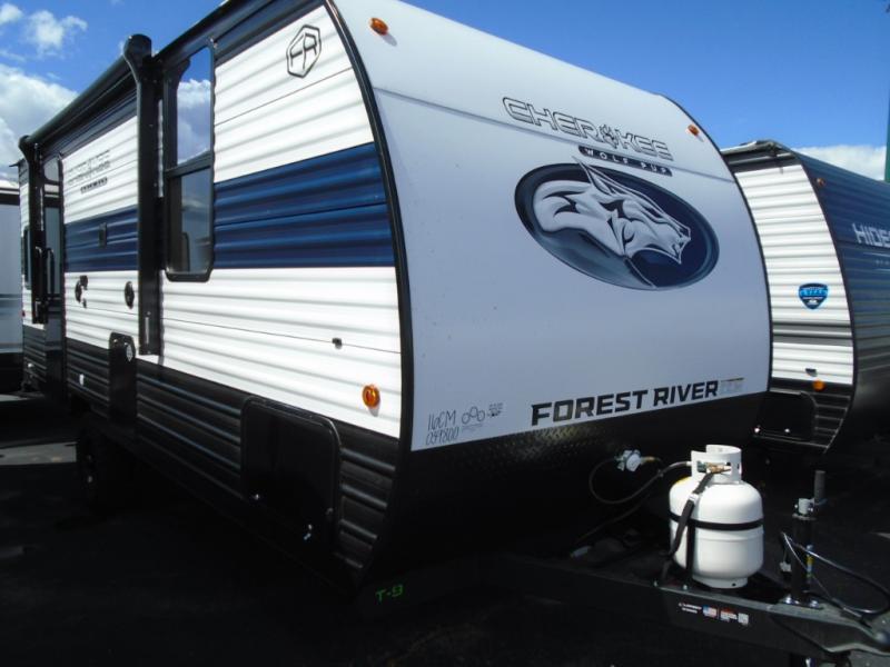Each one of these Forest River Cherokee Wolf Pup travel trailers are lightweight and easy to tow! They are fully self contained with ample tank capacities, an abundance of storage space, and filled with at home amenities. The aerodynamic smooth radius front profile, the Power Gear frame technology, and the space saver rail design make them easier to maneuver. You will also appreciate the seamless roofing membrane with heat reflectivity to keep the sun from making your unit a hot box. The tongue and groove plywood flooring will hold up for years of fun and the USB charging stations help to keep your electronics at 100% while you're away. Come find the best model for you today!