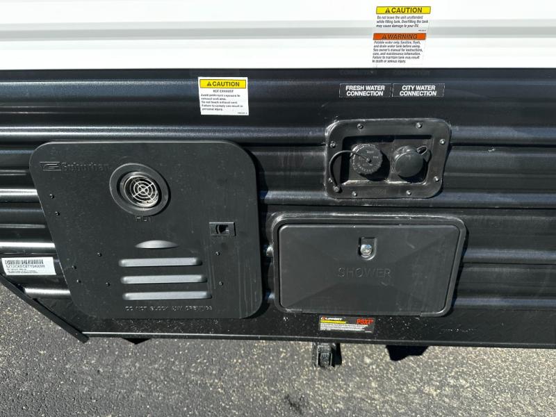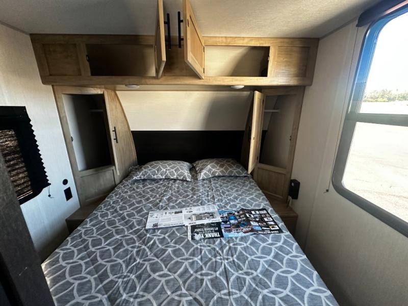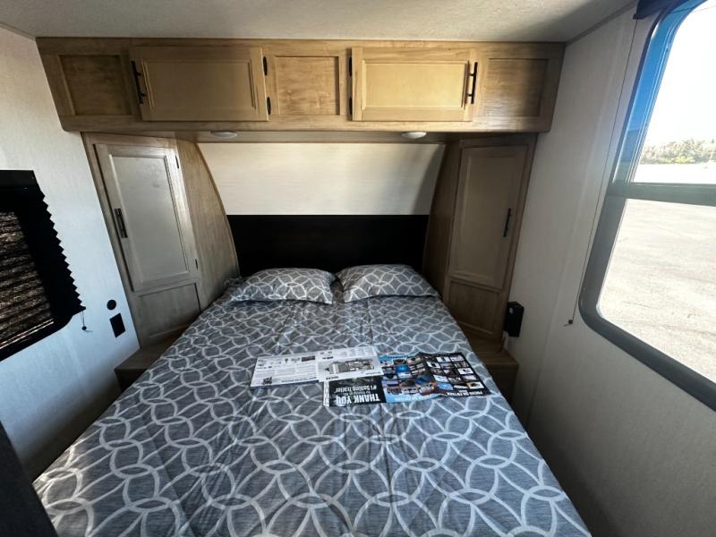 Convenient camping is found with this lightweight travel trailer! Once you arrive at your destination, put out the 15' power awning, then make lunch on the exterior mini kitchen. Inside, you can dine at the booth dinette, freshen up in the tub/shower, and sleep soundly on the queen bed in the master bedroom. And you're sure to find plenty of storage spaces both inside and outside.