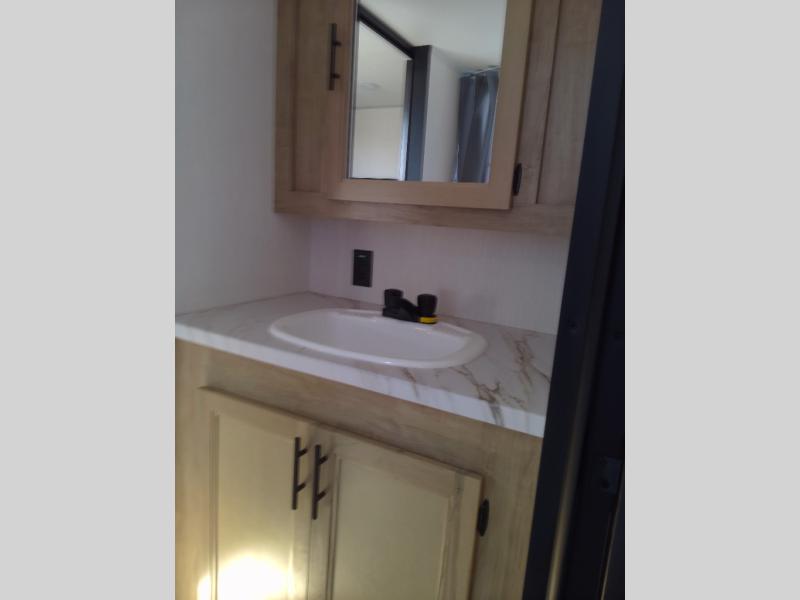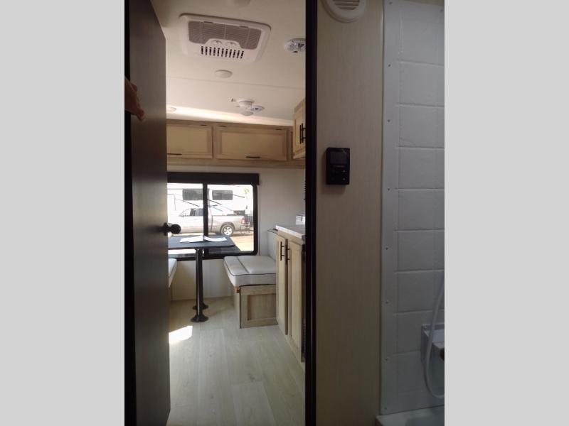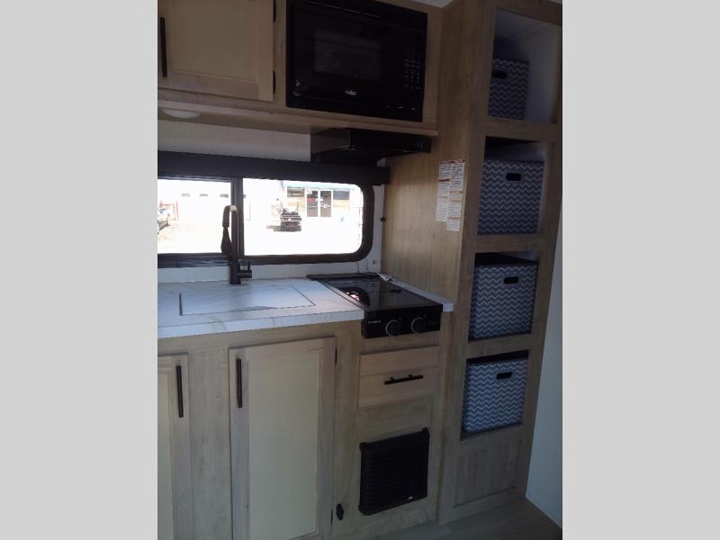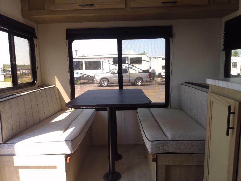 Convenient camping is found with this lightweight travel trailer! Once you arrive at your destination, put out the 15' power awning, then make lunch on the exterior mini kitchen. Inside, you can dine at the booth dinette, freshen up in the tub/shower, and sleep soundly on the queen bed in the master bedroom. And you're sure to find plenty of storage spaces both inside and outside.