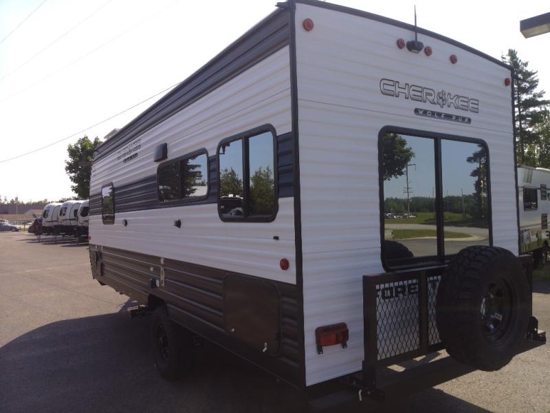 Each one of these Forest River Cherokee Wolf Pup travel trailers and toy hauler are lightweight and easy to tow! They are fully self-contained with ample tank capacities, an abundance of storage space, and filled with at home amenities. The full bath and kitchen amenities will make life at the campground easier than ever, and the outdoor patio awning will provide an inviting outdoor space!