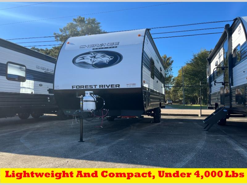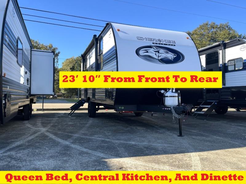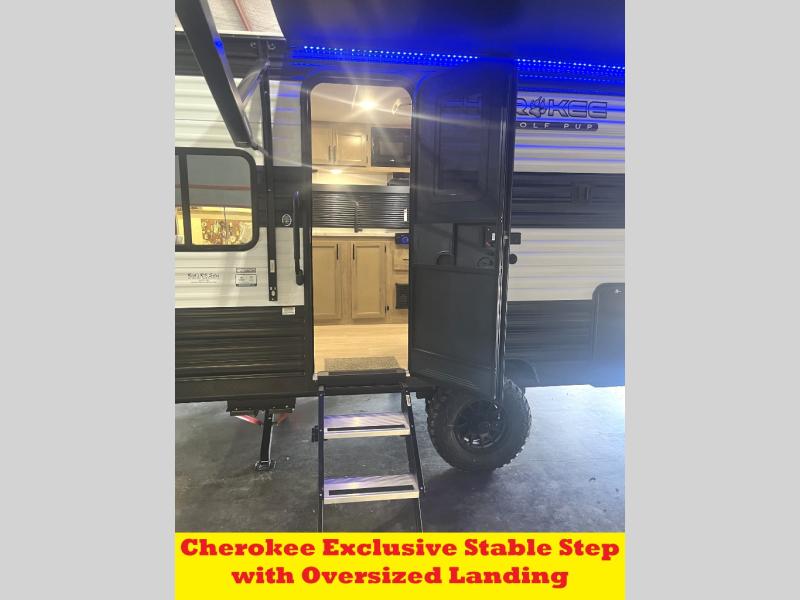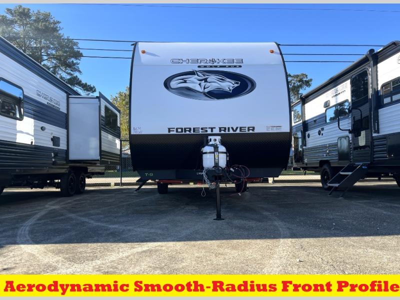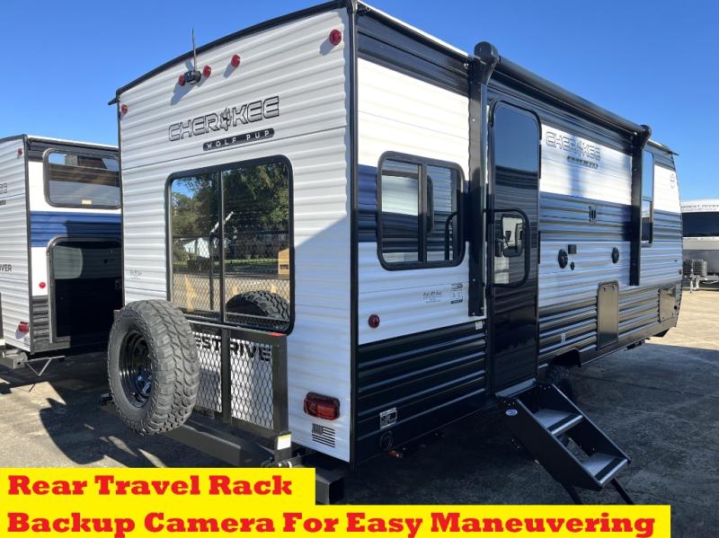 Each one of these Forest River Cherokee Wolf Pup travel trailers and toy hauler are lightweight and easy to tow! They are fully self-contained with ample tank capacities, an abundance of storage space, and filled with at home amenities. The full bath and kitchen amenities will make life at the campground easier than ever, and the outdoor patio awning will provide an inviting outdoor space!
