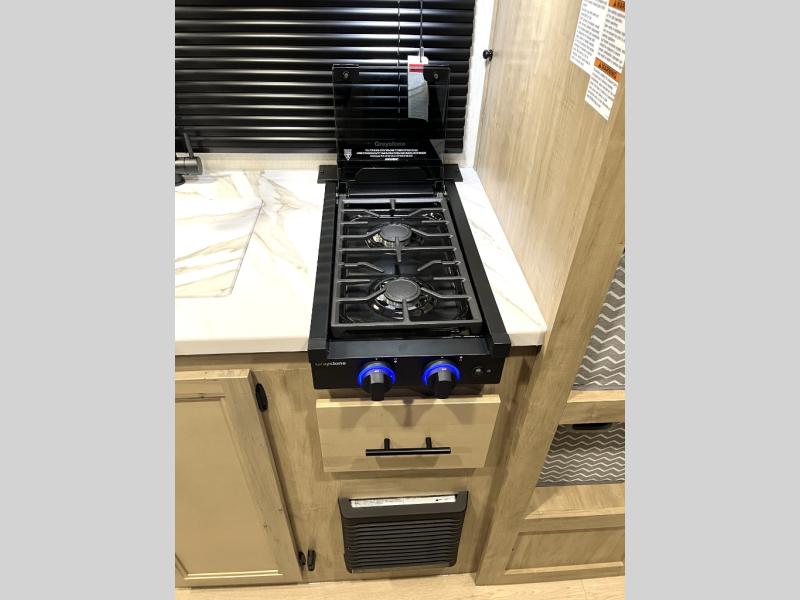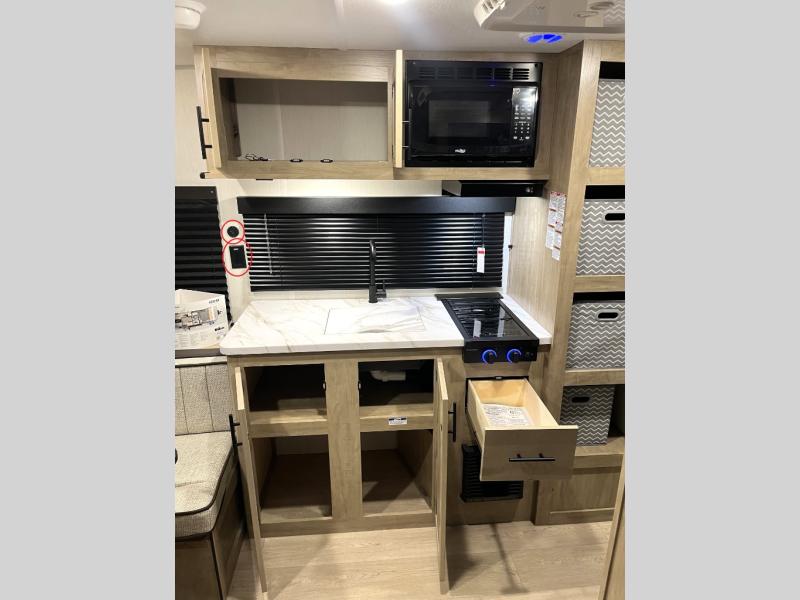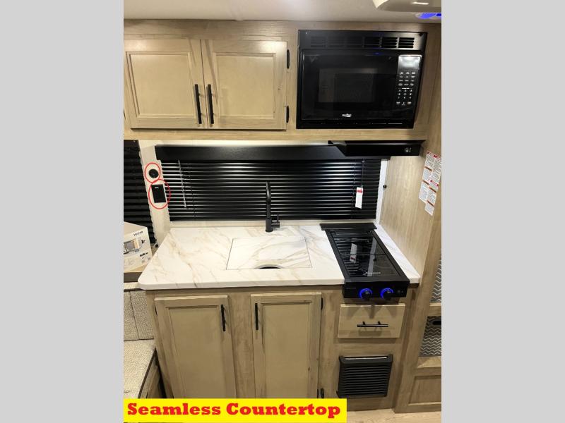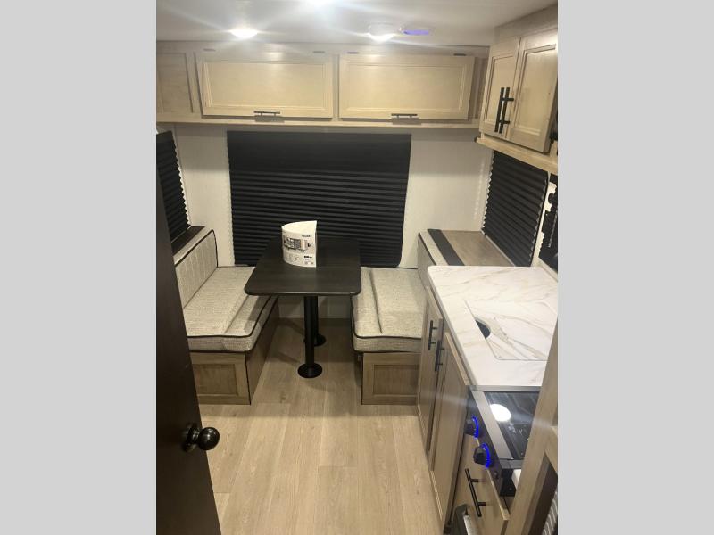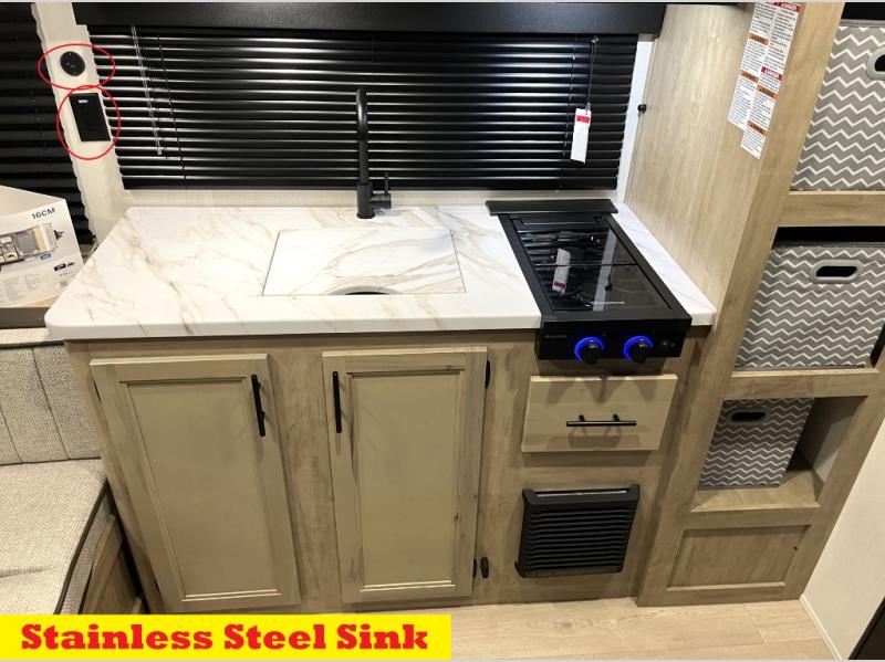 Convenient camping is found with this lightweight travel trailer! Once you arrive at your destination, put out the 15' power awning, then make lunch on the exterior mini kitchen. Inside, you can dine at the booth dinette, freshen up in the tub/shower, and sleep soundly on the queen bed in the master bedroom. And you're sure to find plenty of storage spaces both inside and outside.