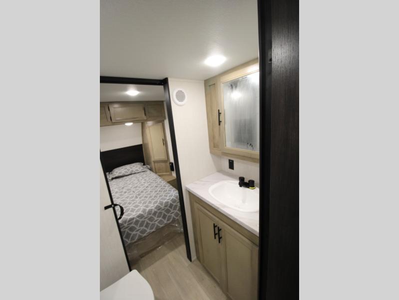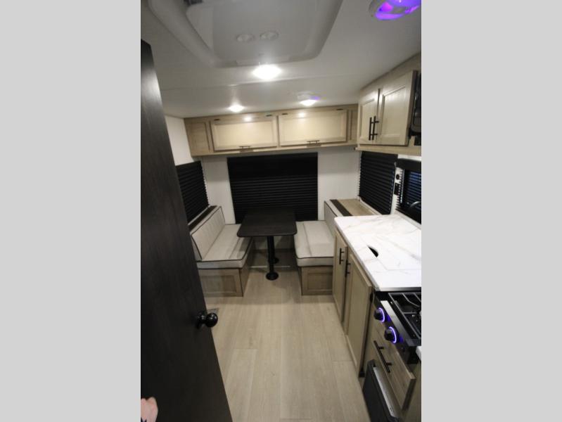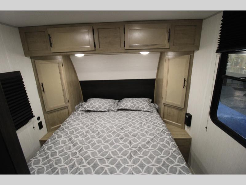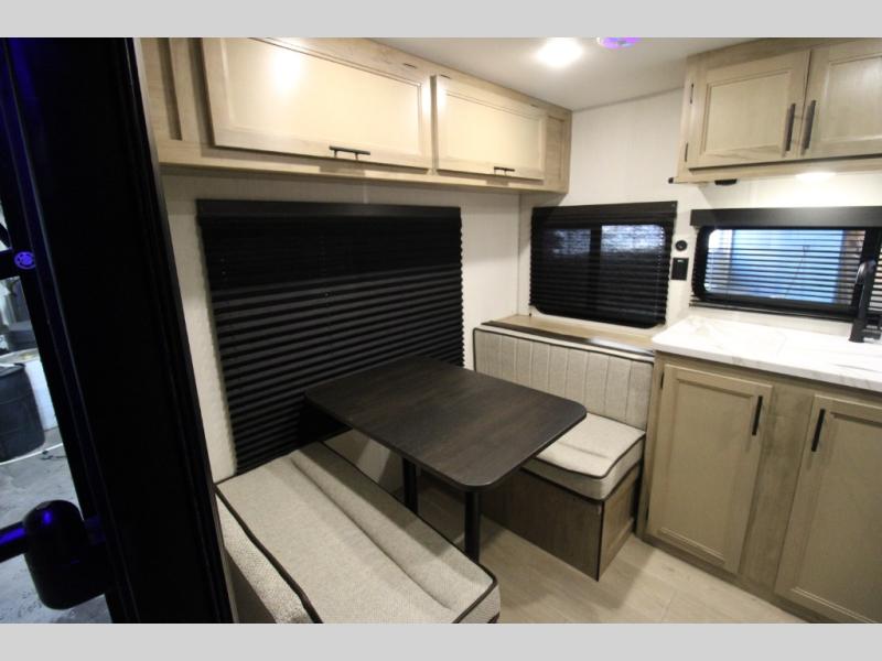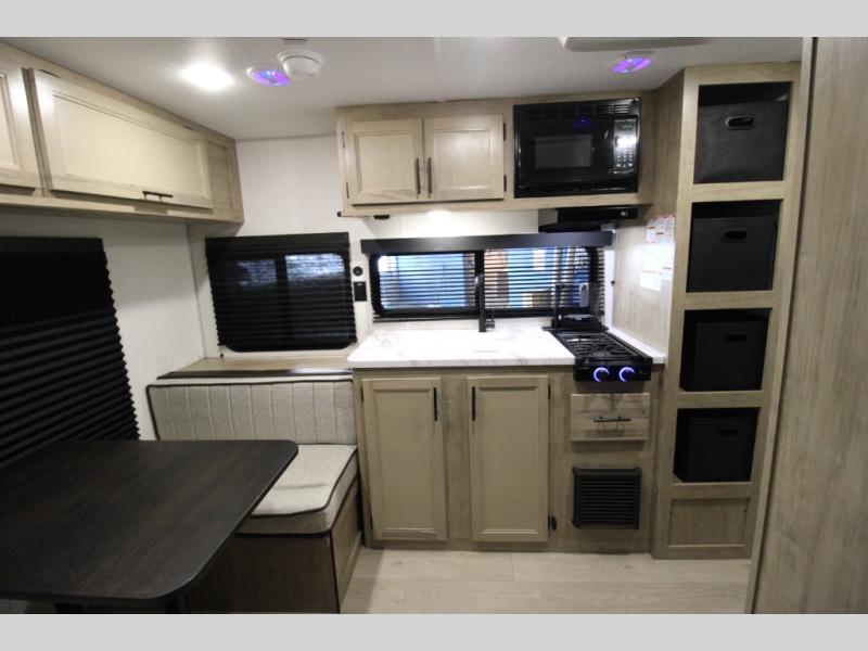 Convenient camping is found with this lightweight travel trailer! Once you arrive at your destination, put out the 15' power awning, then make lunch on the exterior mini kitchen. Inside, you can dine at the booth dinette, freshen up in the tub/shower, and sleep soundly on the queen bed in the master bedroom. And you're sure to find plenty of storage spaces both inside and outside.