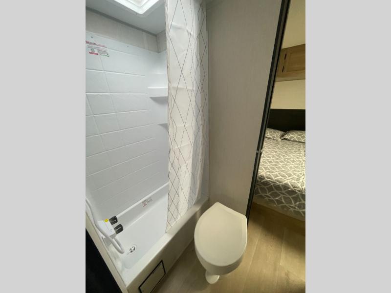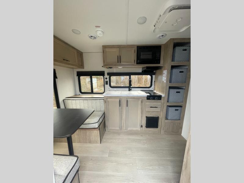 Convenient camping is found with this lightweight travel trailer! Once you arrive at your destination, put out the 15' power awning, then make lunch on the exterior mini kitchen. Inside, you can dine at the booth dinette, freshen up in the tub/shower, and sleep soundly on the queen bed in the master bedroom. And you're sure to find plenty of storage spaces both inside and outside.