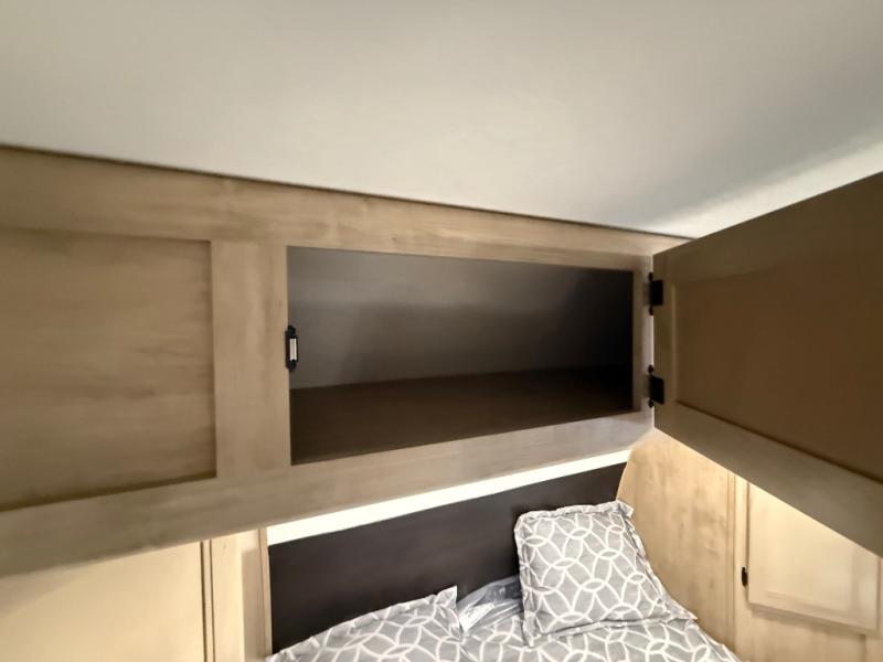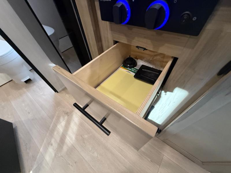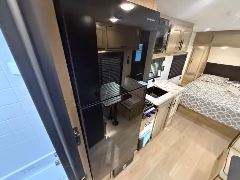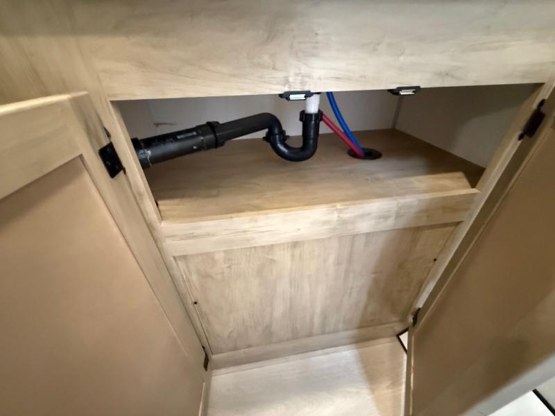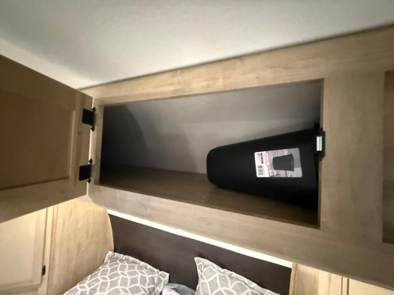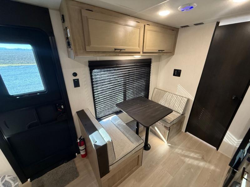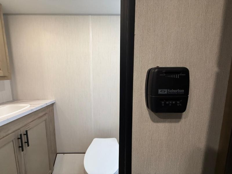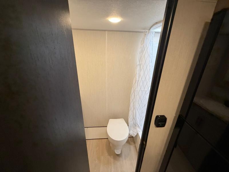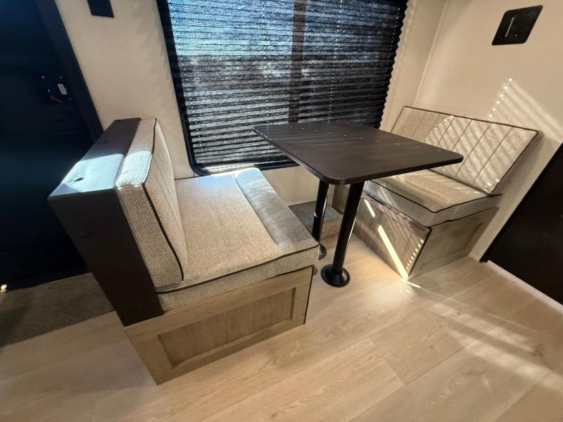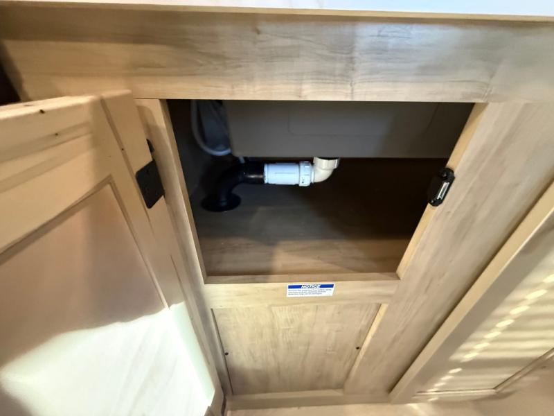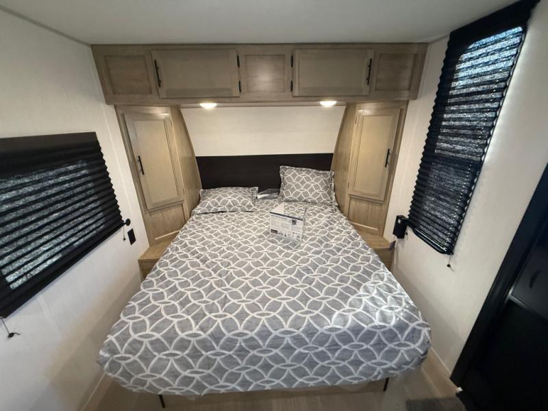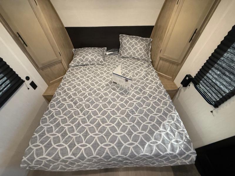 You will love camping in this travel trailer with a front queen bed. Freshen up each morning in the full rear bathroom with the tub/shower, a toilet, and sink. Fill your bellies with the perishables stored in the refrigerator and cook them on the cooktop then enjoy them at the booth dinette. You could even prepare a meal while breathing in some fresh air at the outside mini kitchen while staying protected by the 12' power awning. Easily store all of your outdoor gear in the outside storage area too!