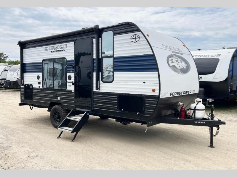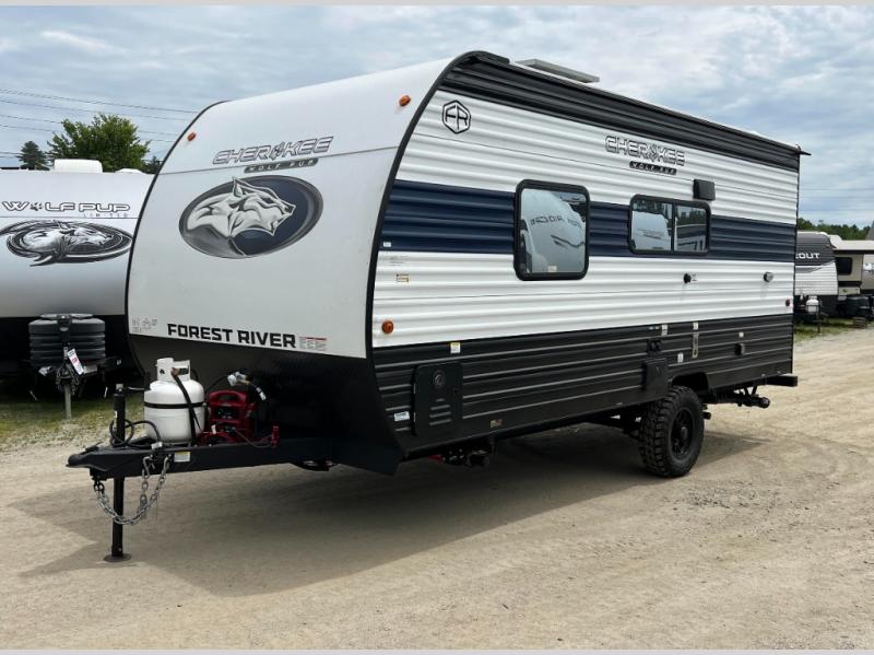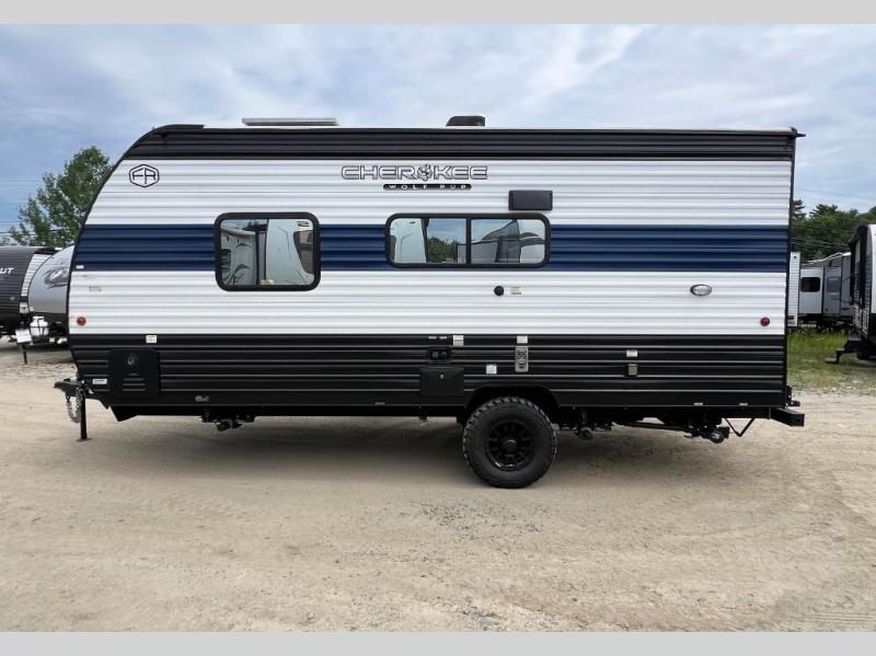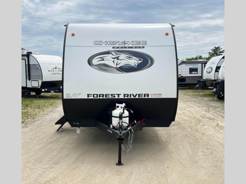 Each one of these Forest River Cherokee Wolf Pup travel trailers are lightweight and easy to tow! They are fully self contained with ample tank capacities, an abundance of storage space, and filled with at home amenities. The aerodynamic smooth radius front profile, the Power Gear frame technology, and the space saver rail design make them easier to maneuver. You will also appreciate the seamless roofing membrane with heat reflectivity to keep the sun from making your unit a hot box. The tongue and groove plywood flooring will hold up for years of fun and the USB charging stations help to keep your electronics at 100% while you're away. Come find the best model for you today!