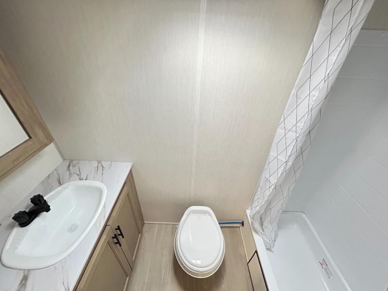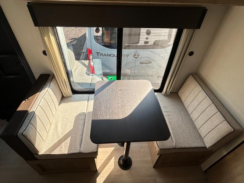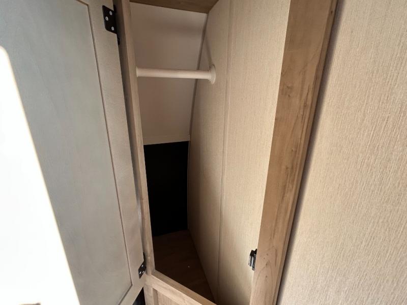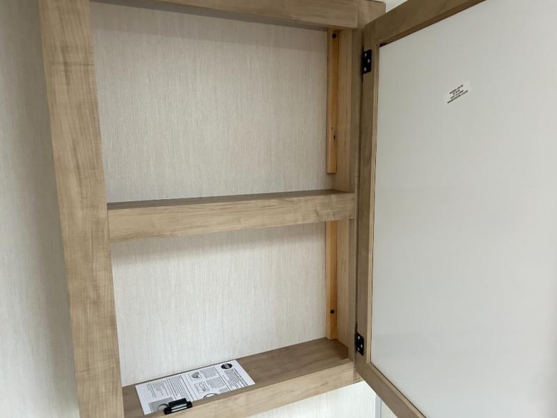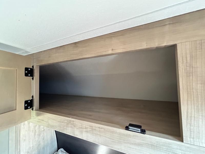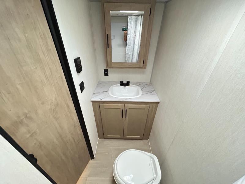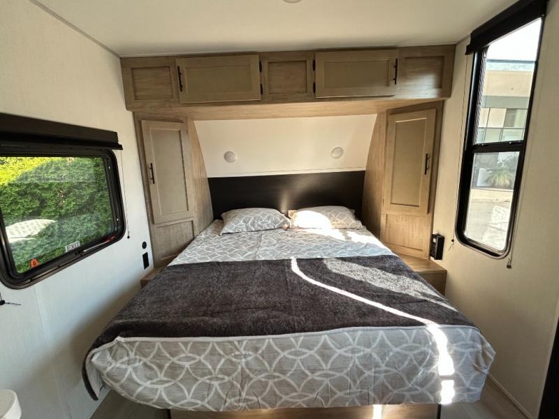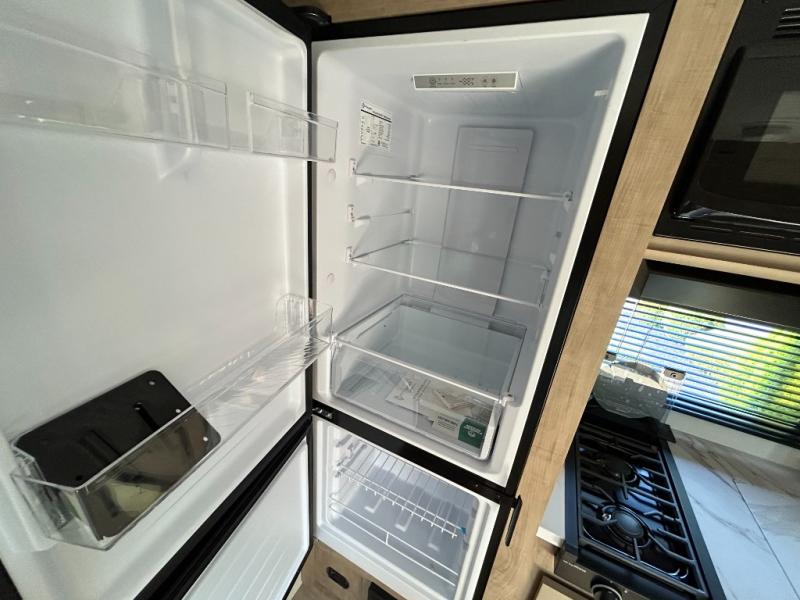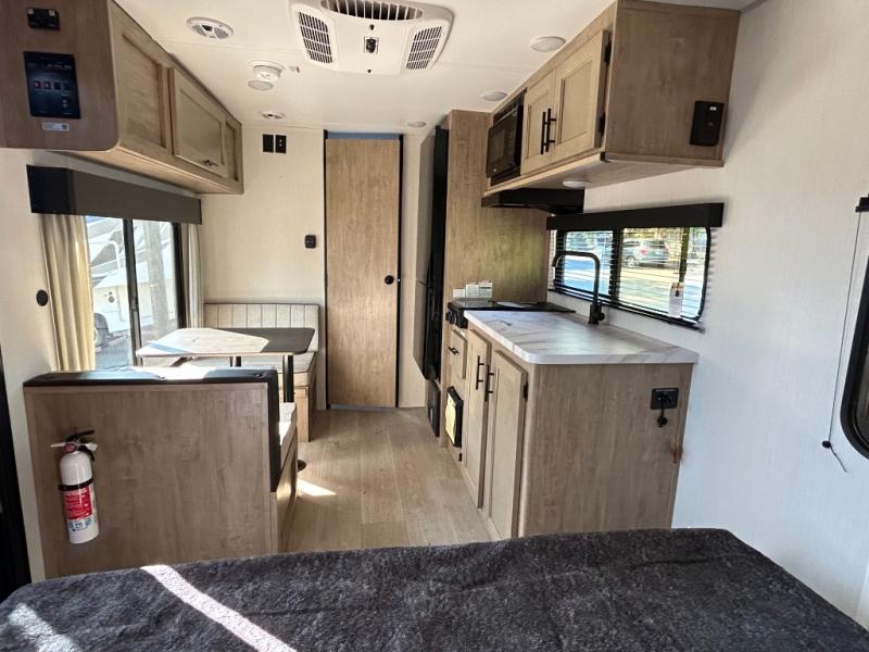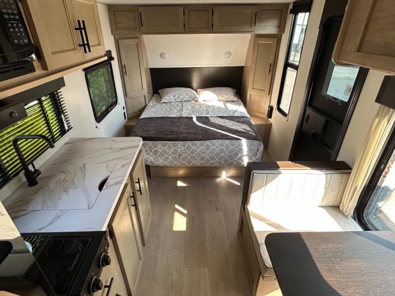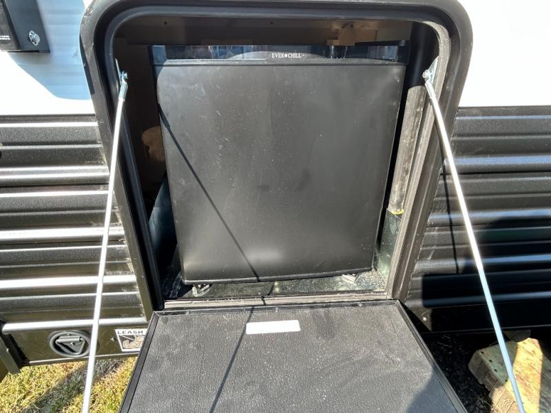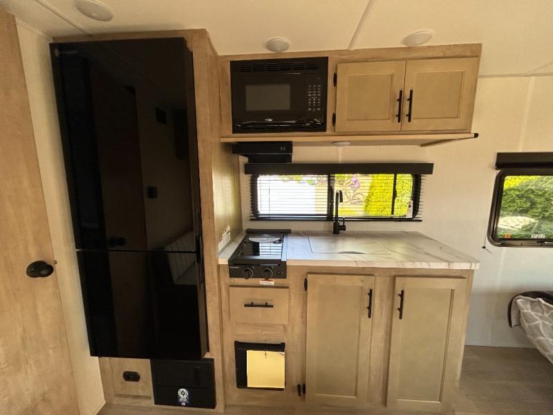 You will love camping in this travel trailer with a front queen bed. Freshen up each morning in the full rear bathroom with the tub/shower, a toilet, and sink. Fill your bellies with the perishables stored in the 12V high efficiency refrigerator and cook them on the high output cooktop then enjoy them at the booth dinette. You could even prepare a meal while breathing in some fresh air at the outside mini kitchen while staying protected by the 12' power awning. Easily store all of your outdoor gear in the outside storage area too!