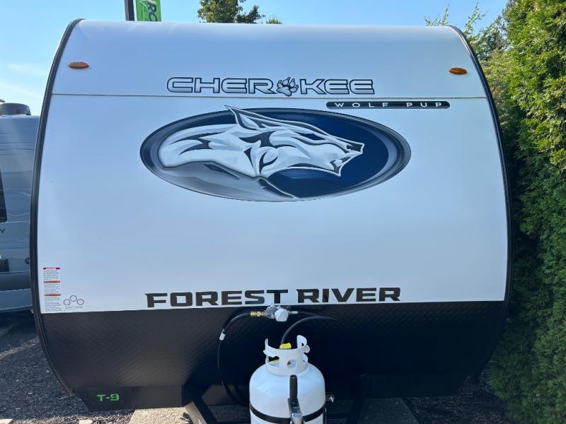 Each one of these Forest River Cherokee Wolf Pup travel trailers are lightweight and easy to tow! They are fully self contained with ample tank capacities, an abundance of storage space, and filled with at home amenities. The aerodynamic smooth radius front profile, the Power Gear frame technology, and the space saver rail design make them easier to maneuver. You will also appreciate the seamless roofing membrane with heat reflectivity to keep the sun from making your unit a hot box. The tongue and groove plywood flooring will hold up for years of fun and the USB charging stations help to keep your electronics at 100% while you're away. Come find the best model for you today!