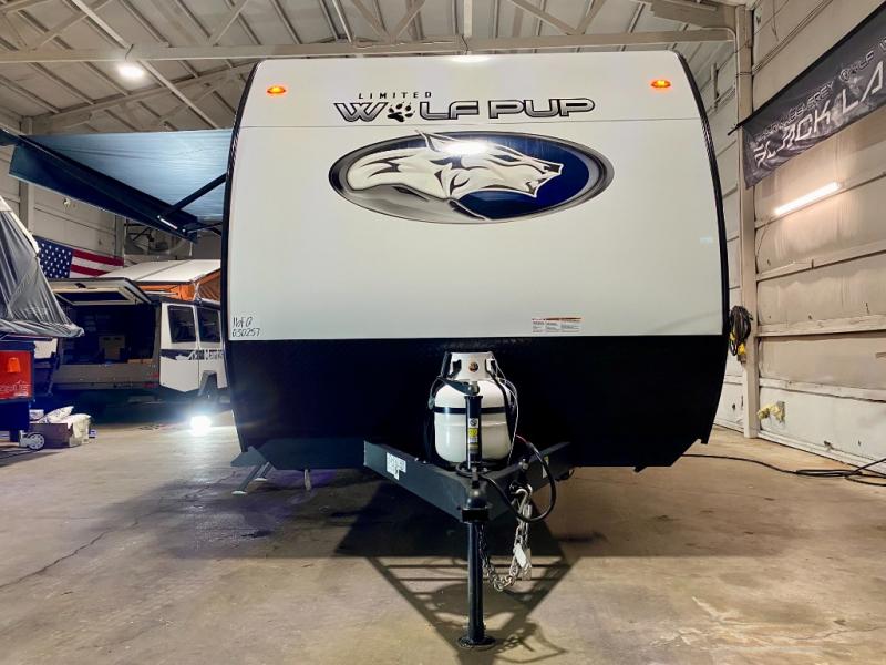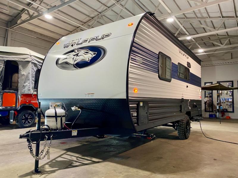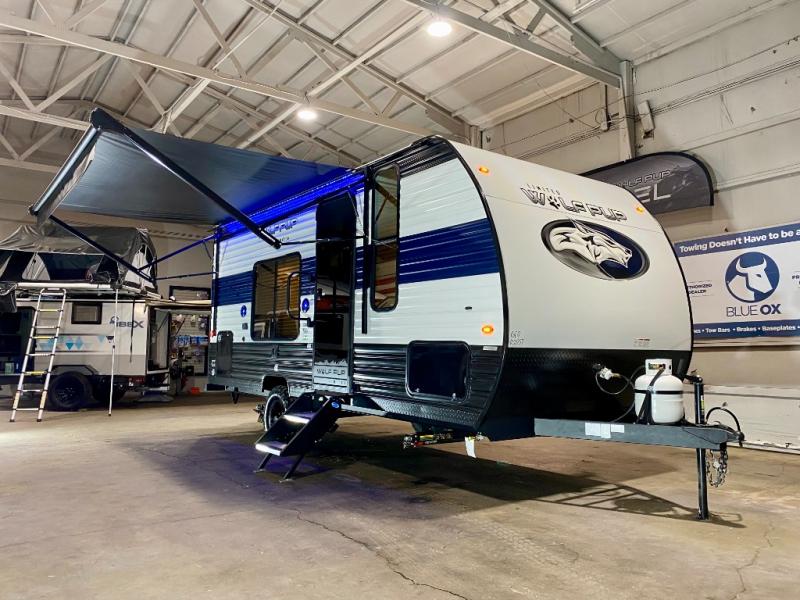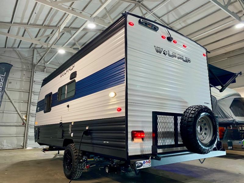 Each one of these Forest River Cherokee Wolf Pup travel trailers and toy hauler are lightweight and easy to tow! They are fully self-contained with ample tank capacities, an abundance of storage space, and filled with at home amenities. The full bath and kitchen amenities will make life at the campground easier than ever, and the outdoor patio awning will provide an inviting outdoor space!