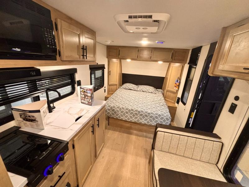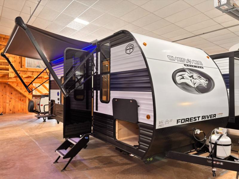 Each one of these Forest River Cherokee Wolf Pup travel trailers and toy hauler are lightweight and easy to tow! They are fully self-contained with ample tank capacities, an abundance of storage space, and filled with at home amenities. The full bath and kitchen amenities will make life at the campground easier than ever, and the outdoor patio awning will provide an inviting outdoor space!