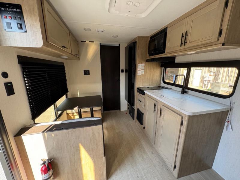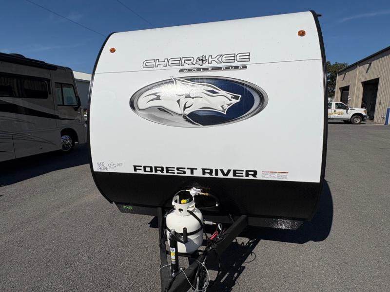 Each one of these Forest River Cherokee Wolf Pup travel trailers and toy hauler are lightweight and easy to tow! They are fully self-contained with ample tank capacities, an abundance of storage space, and filled with at home amenities. The full bath and kitchen amenities will make life at the campground easier than ever, and the outdoor patio awning will provide an inviting outdoor space!