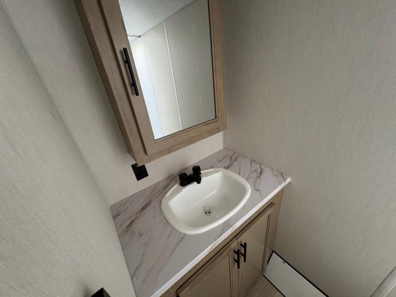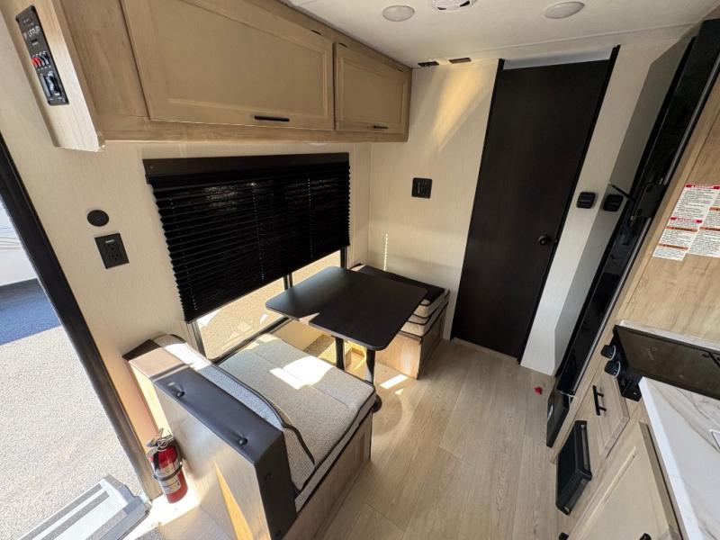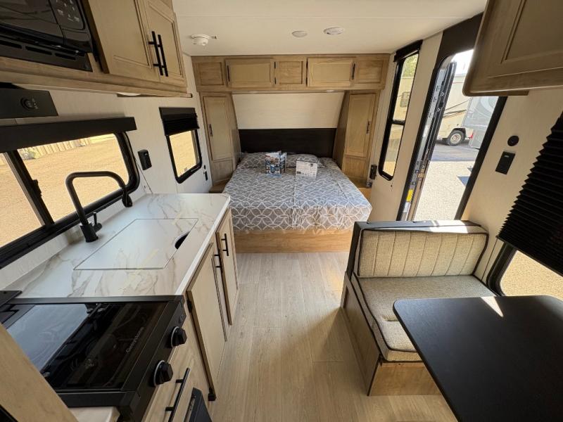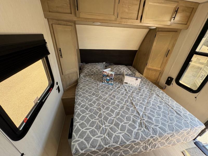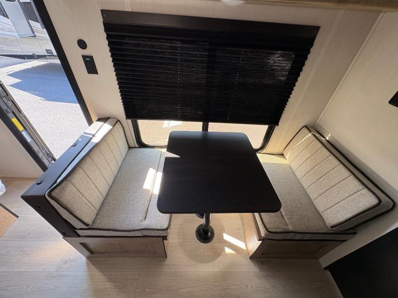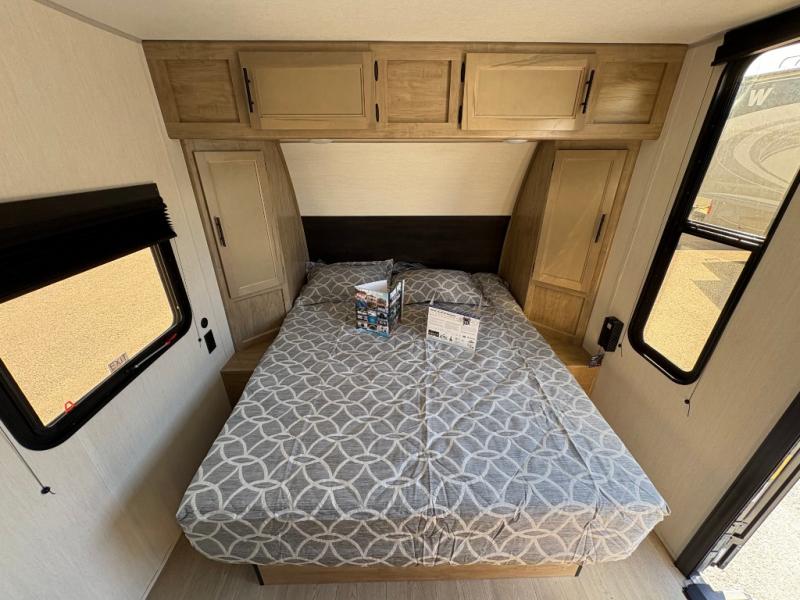 You will love camping in this travel trailer with a front queen bed. Freshen up each morning in the full rear bathroom with the tub/shower, a toilet, and sink. Fill your bellies with the perishables stored in the refrigerator and cook them on the cooktop then enjoy them at the booth dinette. You could even prepare a meal while breathing in some fresh air at the outside mini kitchen while staying protected by the 12' power awning. Easily store all of your outdoor gear in the outside storage area too!