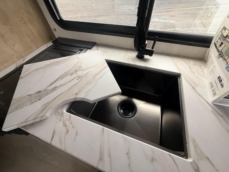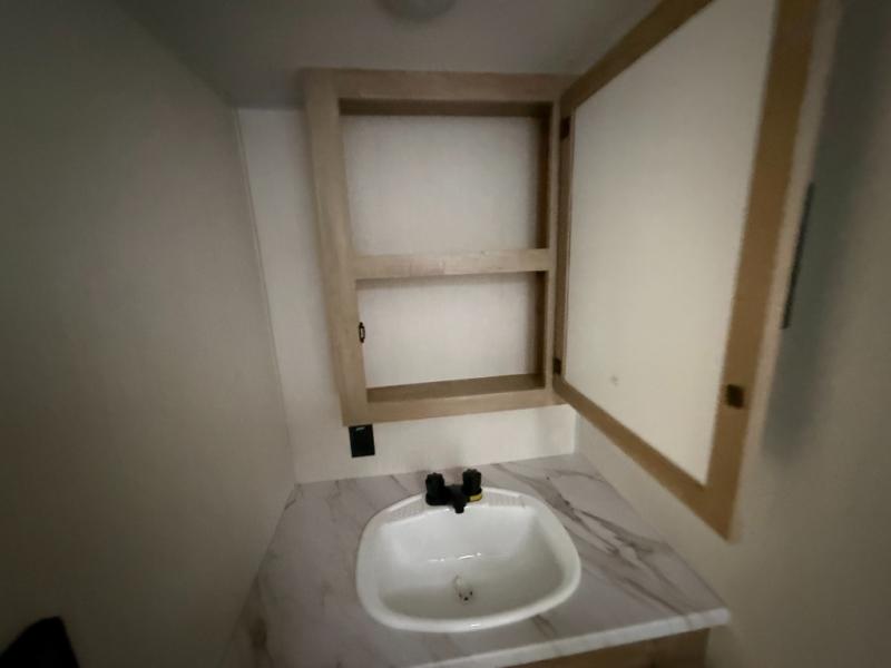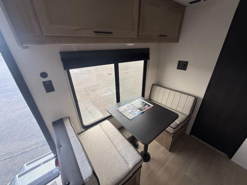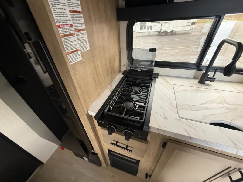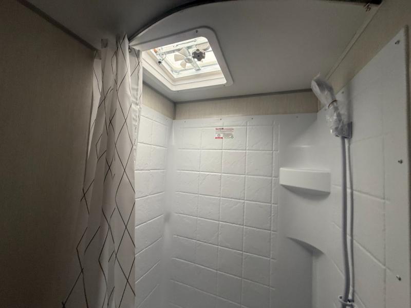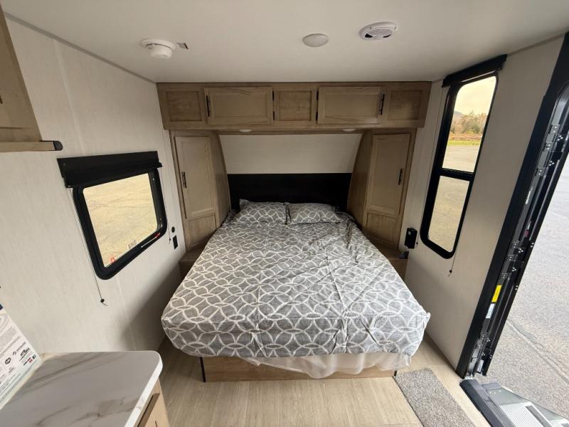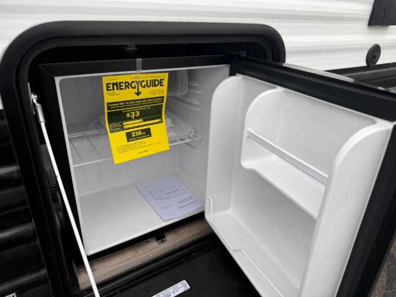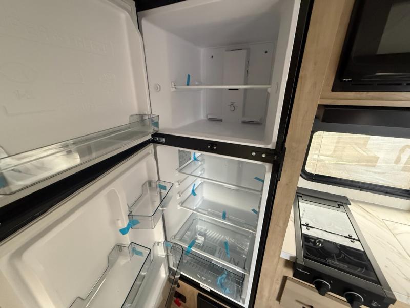 You will love camping in this travel trailer with a front queen bed. Freshen up each morning in the full rear bathroom with the tub/shower, a toilet, and sink. Fill your bellies with the perishables stored in the refrigerator and cook them on the cooktop then enjoy them at the booth dinette. You could even prepare a meal while breathing in some fresh air at the outside mini kitchen while staying protected by the 12' power awning. Easily store all of your outdoor gear in the outside storage area too!