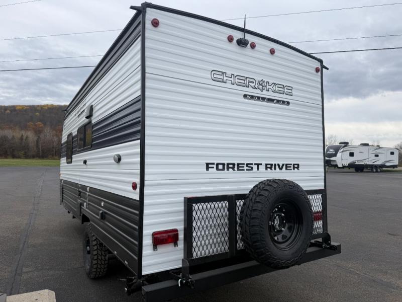 Each one of these Forest River Cherokee Wolf Pup travel trailers and toy hauler are lightweight and easy to tow! They are fully self-contained with ample tank capacities, an abundance of storage space, and filled with at home amenities. The full bath and kitchen amenities will make life at the campground easier than ever, and the outdoor patio awning will provide an inviting outdoor space!