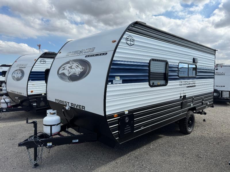Each one of these Forest River Cherokee Wolf Pup travel trailers and toy hauler are lightweight and easy to tow! They are fully self-contained with ample tank capacities, an abundance of storage space, and filled with at home amenities. The full bath and kitchen amenities will make life at the campground easier than ever, and the outdoor patio awning will provide an inviting outdoor space!