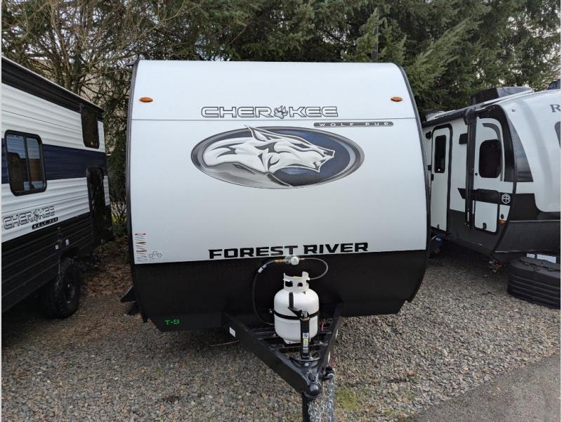 Each one of these Forest River Cherokee Wolf Pup travel trailers and toy hauler are lightweight and easy to tow! They are fully self-contained with ample tank capacities, an abundance of storage space, and filled with at home amenities. The full bath and kitchen amenities will make life at the campground easier than ever, and the outdoor patio awning will provide an inviting outdoor space!