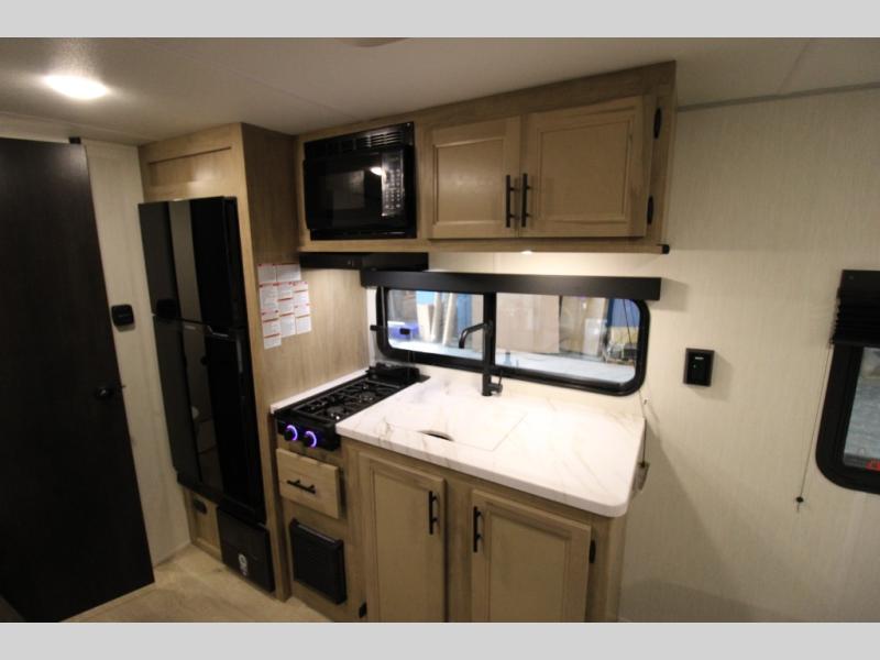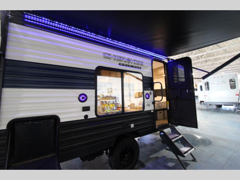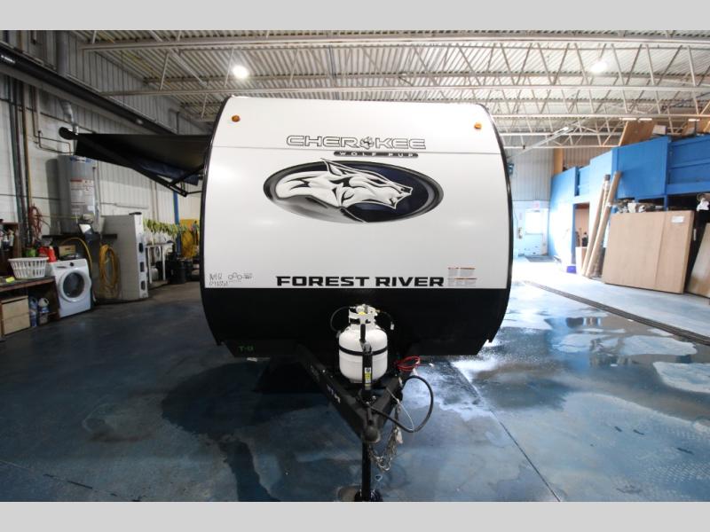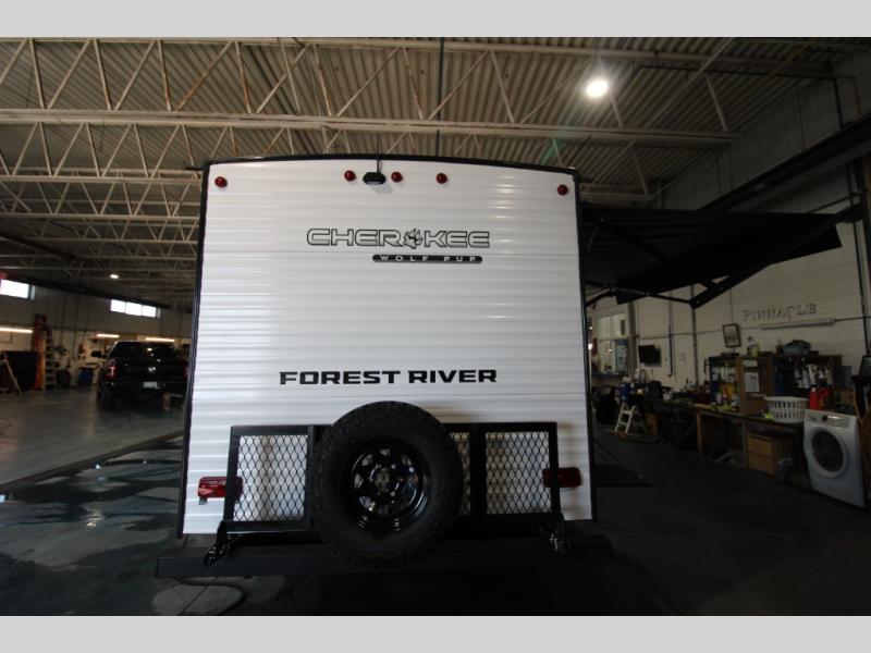 Each one of these Forest River Cherokee Wolf Pup travel trailers and toy hauler are lightweight and easy to tow! They are fully self-contained with ample tank capacities, an abundance of storage space, and filled with at home amenities. The full bath and kitchen amenities will make life at the campground easier than ever, and the outdoor patio awning will provide an inviting outdoor space!
