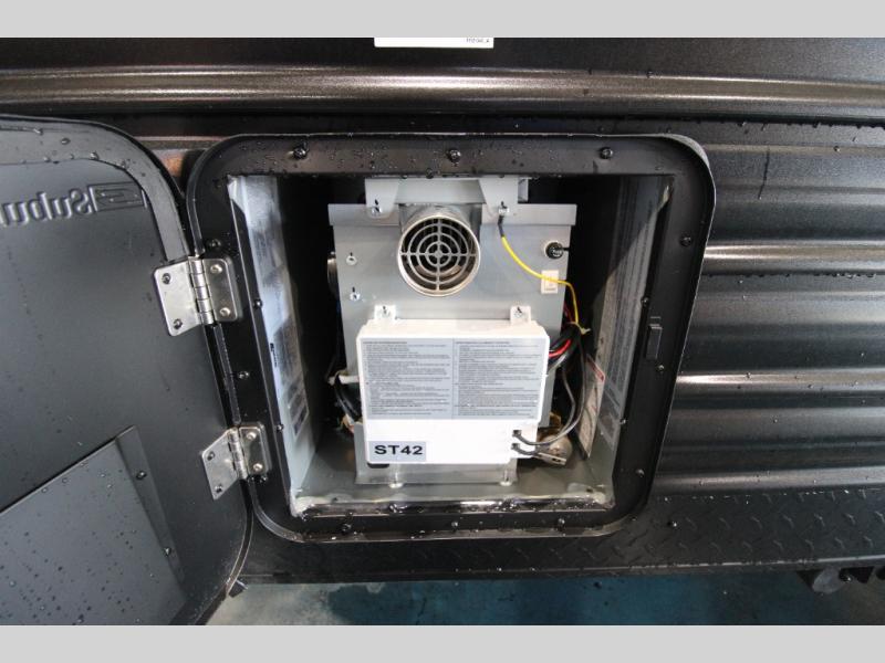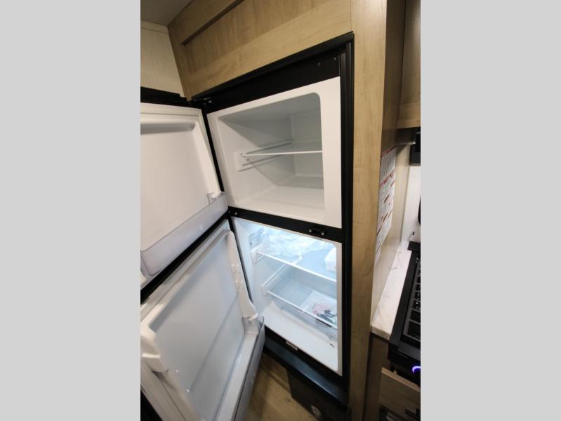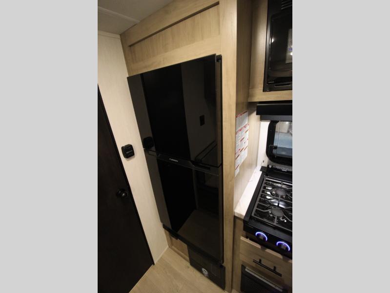 You will love camping in this travel trailer with a front queen bed. Freshen up each morning in the full rear bathroom with the tub/shower, a toilet, and sink. Fill your bellies with the perishables stored in the refrigerator and cook them on the cooktop then enjoy them at the booth dinette. You could even prepare a meal while breathing in some fresh air at the outside mini kitchen while staying protected by the 12' power awning. Easily store all of your outdoor gear in the outside storage area too!