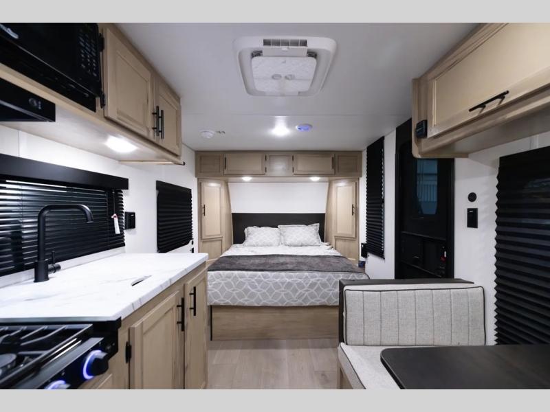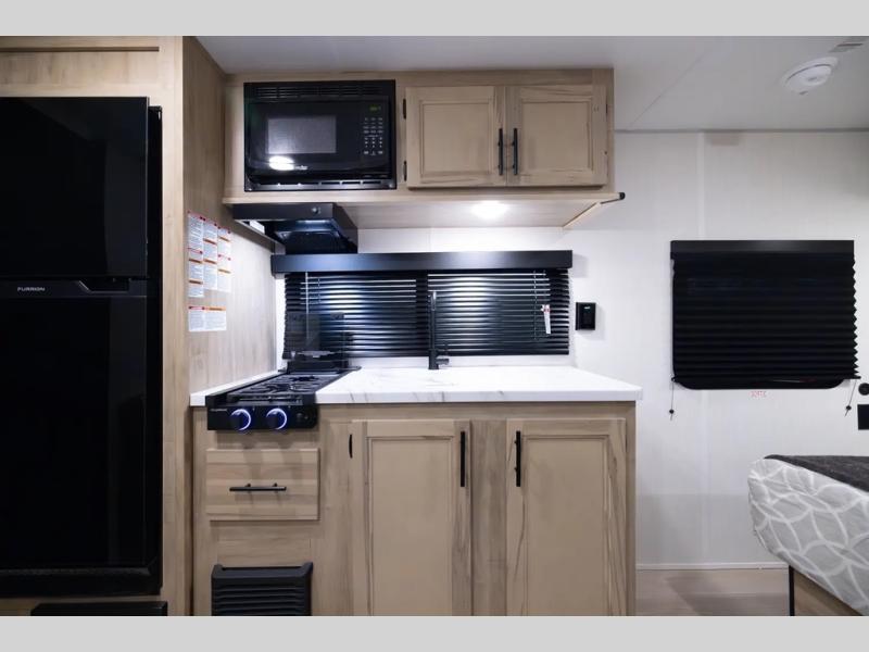 Each one of these Forest River Cherokee Wolf Pup travel trailers and toy hauler are lightweight and easy to tow! They are fully self-contained with ample tank capacities, an abundance of storage space, and filled with at home amenities. The full bath and kitchen amenities will make life at the campground easier than ever, and the outdoor patio awning will provide an inviting outdoor space!
