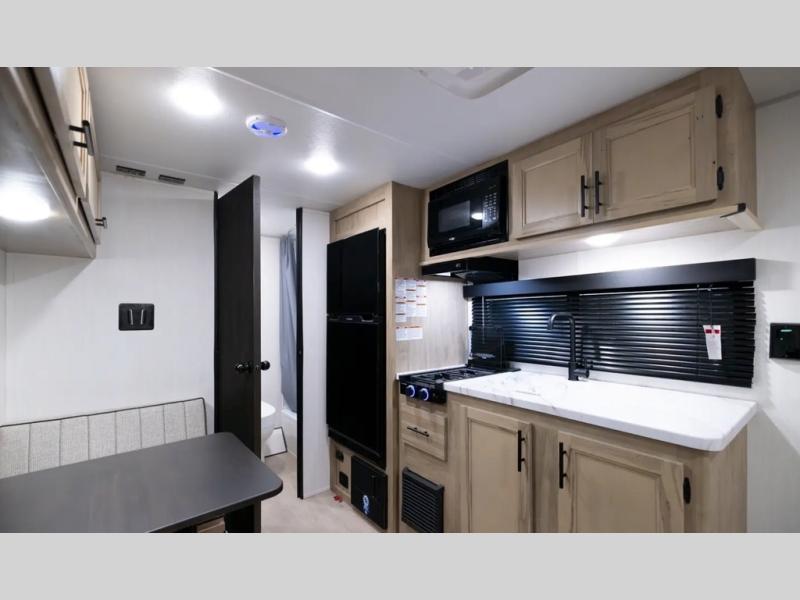Each one of these Forest River Cherokee Wolf Pup travel trailers and toy hauler are lightweight and easy to tow! They are fully self-contained with ample tank capacities, an abundance of storage space, and filled with at home amenities. The full bath and kitchen amenities will make life at the campground easier than ever, and the outdoor patio awning will provide an inviting outdoor space!