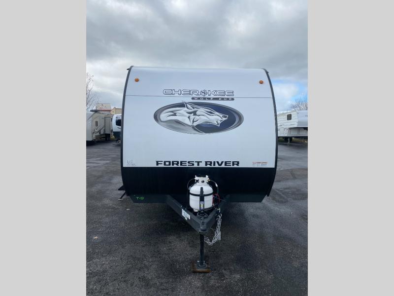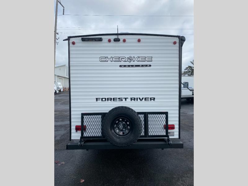 Each one of these Forest River Cherokee Wolf Pup travel trailers and toy hauler are lightweight and easy to tow! They are fully self-contained with ample tank capacities, an abundance of storage space, and filled with at home amenities. The full bath and kitchen amenities will make life at the campground easier than ever, and the outdoor patio awning will provide an inviting outdoor space!
