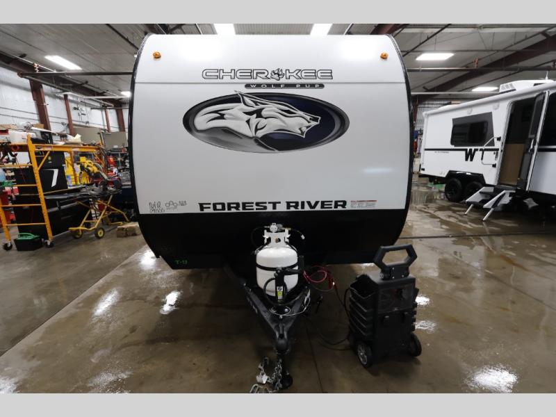 Each one of these Forest River Cherokee Wolf Pup travel trailers and toy hauler are lightweight and easy to tow! They are fully self-contained with ample tank capacities, an abundance of storage space, and filled with at home amenities. The full bath and kitchen amenities will make life at the campground easier than ever, and the outdoor patio awning will provide an inviting outdoor space!
