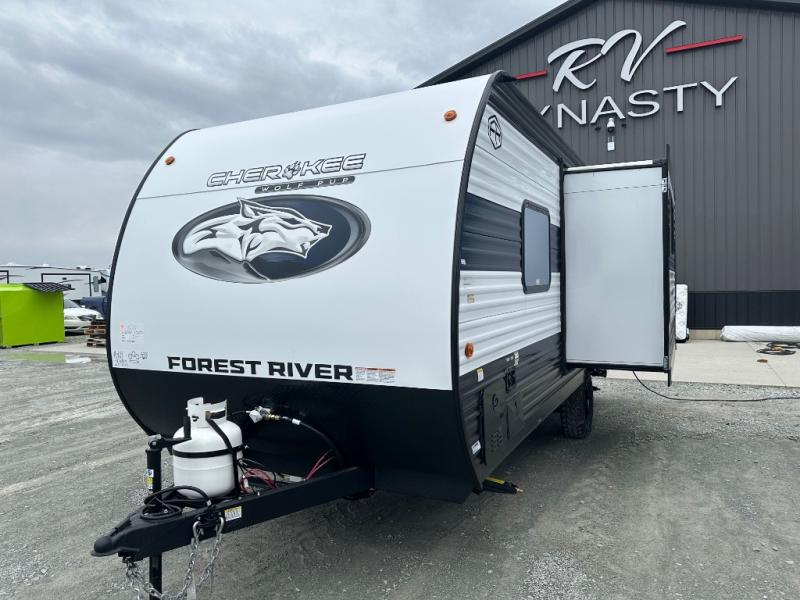 Each one of these Forest River Cherokee Wolf Pup travel trailers are lightweight and easy to tow! They are fully self contained with ample tank capacities, an abundance of storage space, and filled with at home amenities. The aerodynamic smooth radius front profile, the Power Gear frame technology, and the space saver rail design make them easier to maneuver. You will also appreciate the seamless roofing membrane with heat reflectivity to keep the sun from making your unit a hot box. The tongue and groove plywood flooring will hold up for years of fun and the USB charging stations help to keep your electronics at 100% while you're away. Come find the best model for you today!
