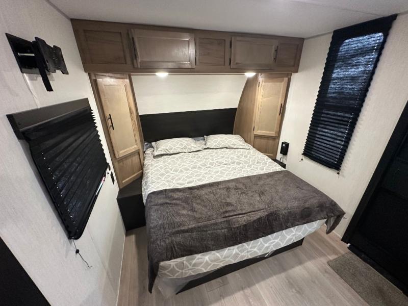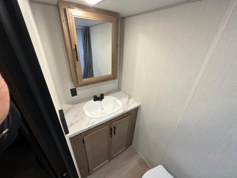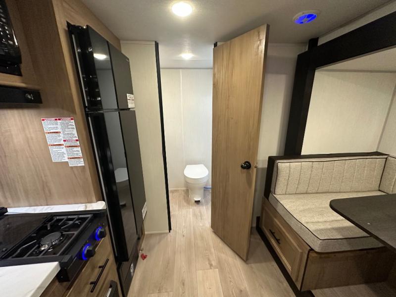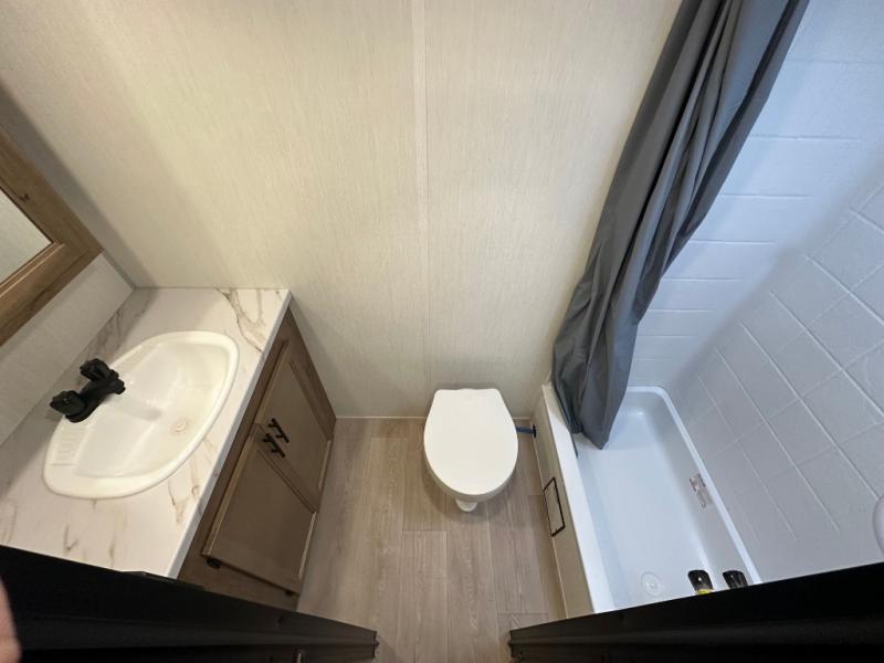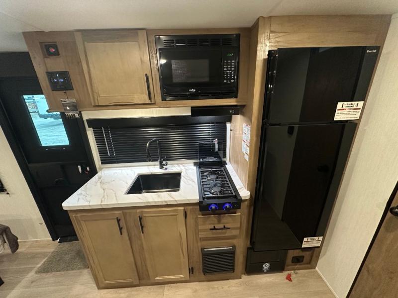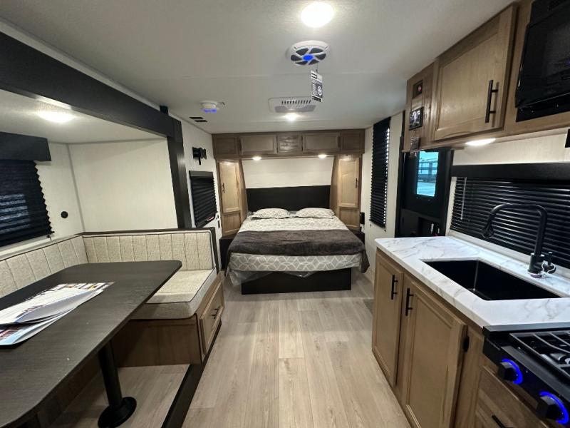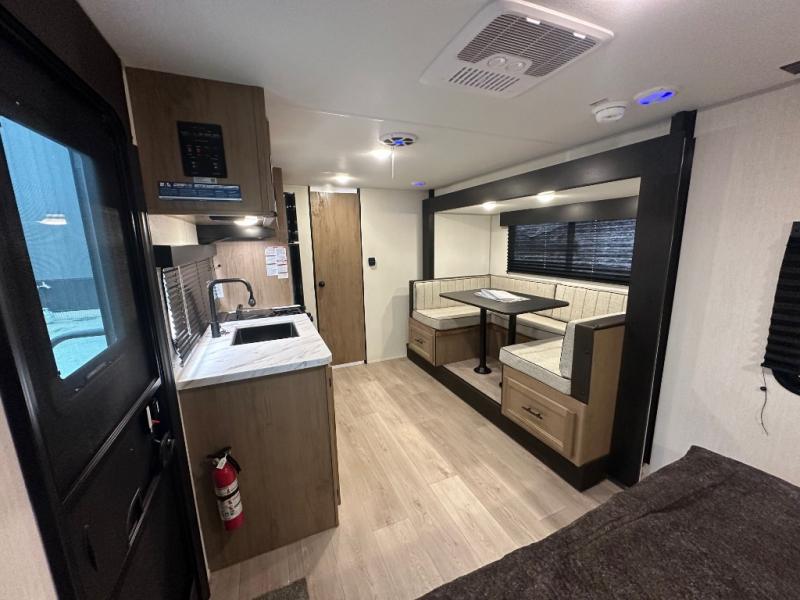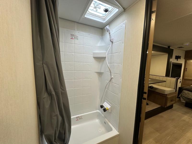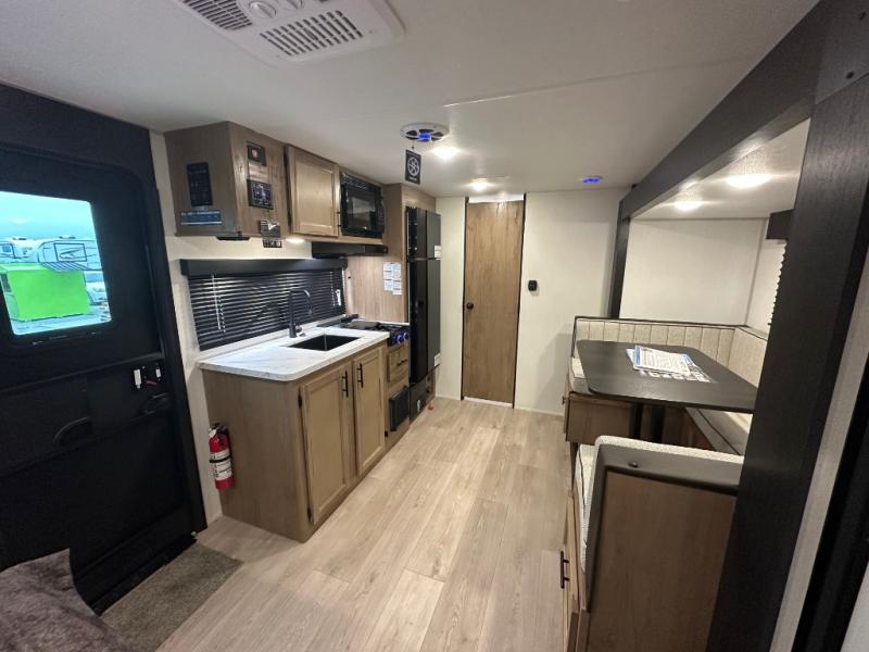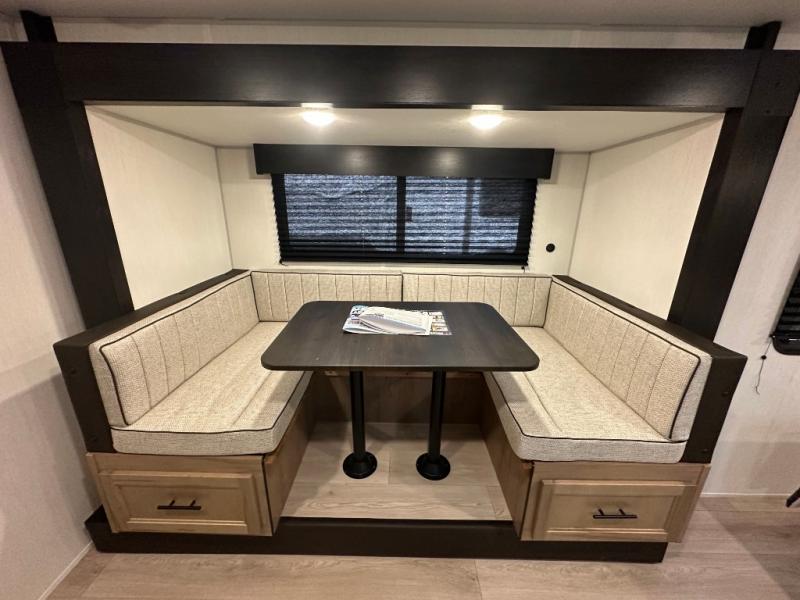 Every camping trip in this travel trailer is sure to be memorable. You will have a front queen bed to sleep on, while your guests take the U-shaped dinette when it's not being used to dine at. The kitchen provides a microwave oven, round single bowl sink, a range for cooking, and a 12 volt refrigerator to keep all of your perishables fresh. The rear bath features a tub/shower, toilet, and vanity with sink, plus a medicine cabinet to keep this space tidy.