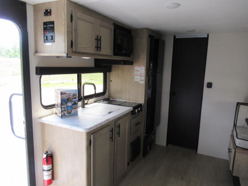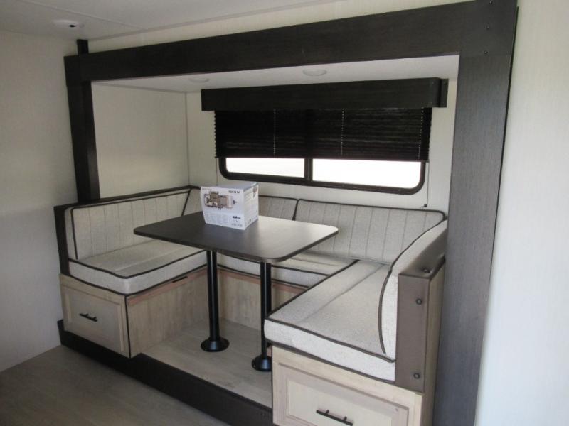 Every camping trip in this travel trailer is sure to be memorable. You will have a front queen bed to sleep on, while your guests take the U-shaped dinette when it's not being used to dine at. The kitchen provides a microwave oven, round single bowl sink, a range for cooking, and a 12 volt refrigerator to keep all of your perishables fresh. The rear bath features a tub/shower, toilet, and vanity with sink, plus a medicine cabinet to keep this space tidy.