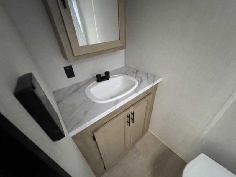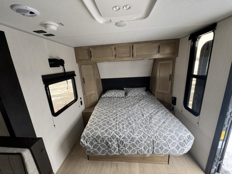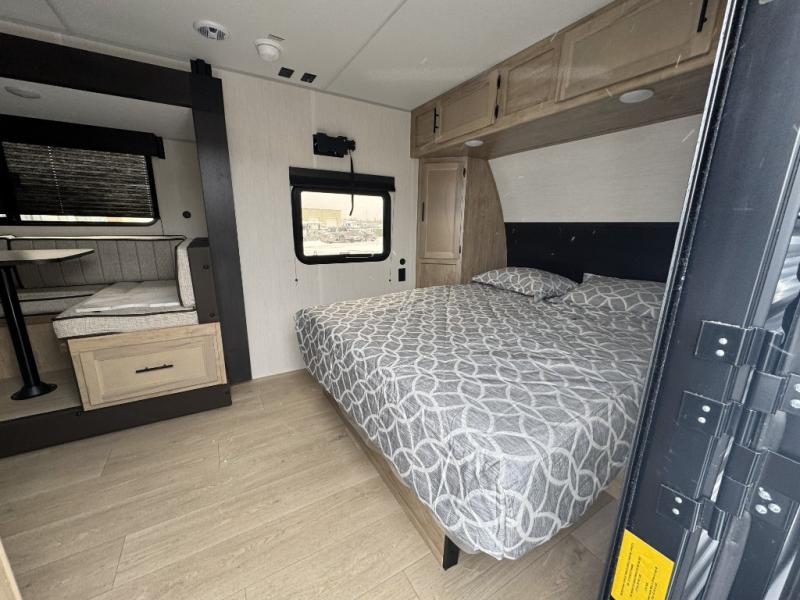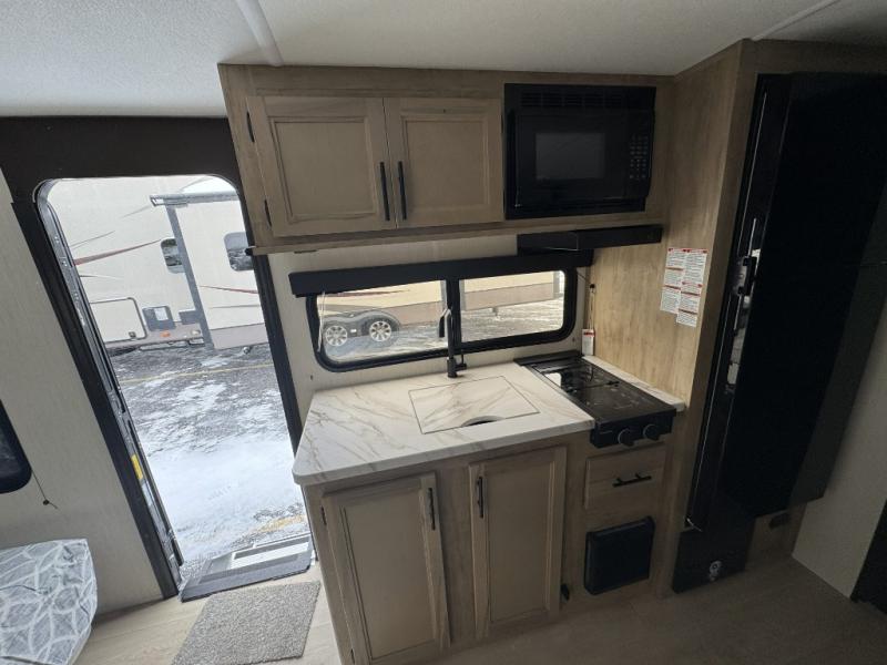 Every camping trip in this travel trailer is sure to be memorable. You will have a front queen bed to sleep on, while your guests take the U-shaped dinette when it's not being used to dine at. The kitchen provides a microwave oven, round single bowl sink, a range for cooking, and a refrigerator to keep all of your perishables fresh. The rear bath features a tub/shower, toilet, and vanity with sink, plus a medicine cabinet to keep this space tidy.