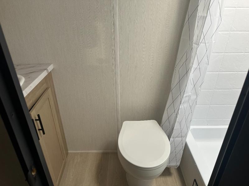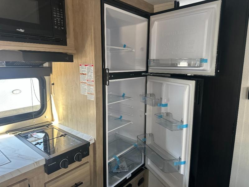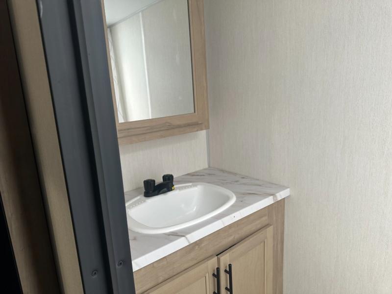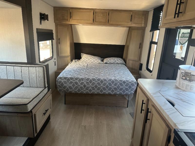 Every camping trip in this travel trailer is sure to be memorable. You will have a front queen bed to sleep on, while your guests take the U-shaped dinette when it's not being used to dine at. The kitchen provides a microwave oven, round single bowl sink, a range for cooking, and a refrigerator to keep all of your perishables fresh. The rear bath features a tub/shower, toilet, and vanity with sink, plus a medicine cabinet to keep this space tidy.
