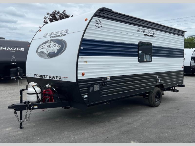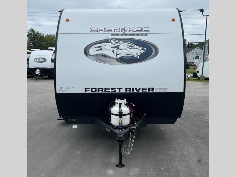 Each one of these Forest River Cherokee Wolf Pup travel trailers are lightweight and easy to tow! They are fully self contained with ample tank capacities, an abundance of storage space, and filled with at home amenities. The aerodynamic smooth radius front profile, the Power Gear frame technology, and the space saver rail design make them easier to maneuver. You will also appreciate the seamless roofing membrane with heat reflectivity to keep the sun from making your unit a hot box. The tongue and groove plywood flooring will hold up for years of fun and the USB charging stations help to keep your electronics at 100% while you're away. Come find the best model for you today!
