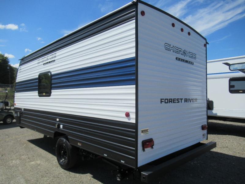 Each one of these Forest River Cherokee Wolf Pup travel trailers are lightweight and easy to tow! They are fully self contained with ample tank capacities, an abundance of storage space, and filled with at home amenities. The aerodynamic smooth radius front profile, the Power Gear frame technology, and the space saver rail design make them easier to maneuver. You will also appreciate the seamless roofing membrane with heat reflectivity to keep the sun from making your unit a hot box. The tongue and groove plywood flooring will hold up for years of fun and the USB charging stations help to keep your electronics at 100% while you're away. Come find the best model for you today!