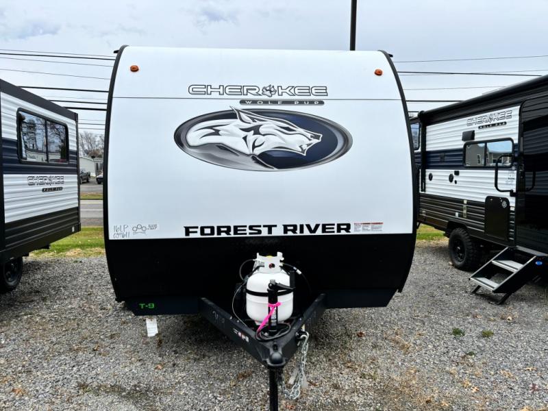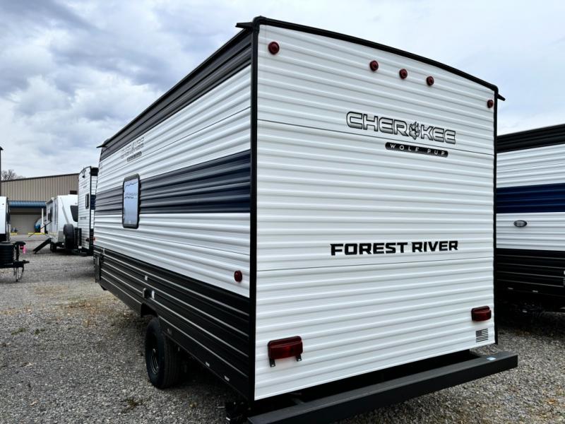 Each one of these Forest River Cherokee Wolf Pup travel trailers are lightweight and easy to tow! They are fully self contained with ample tank capacities, an abundance of storage space, and filled with at home amenities. The aerodynamic smooth radius front profile, the Power Gear frame technology, and the space saver rail design make them easier to maneuver. You will also appreciate the seamless roofing membrane with heat reflectivity to keep the sun from making your unit a hot box. The tongue and groove plywood flooring will hold up for years of fun and the USB charging stations help to keep your electronics at 100% while you're away. Come find the best model for you today!