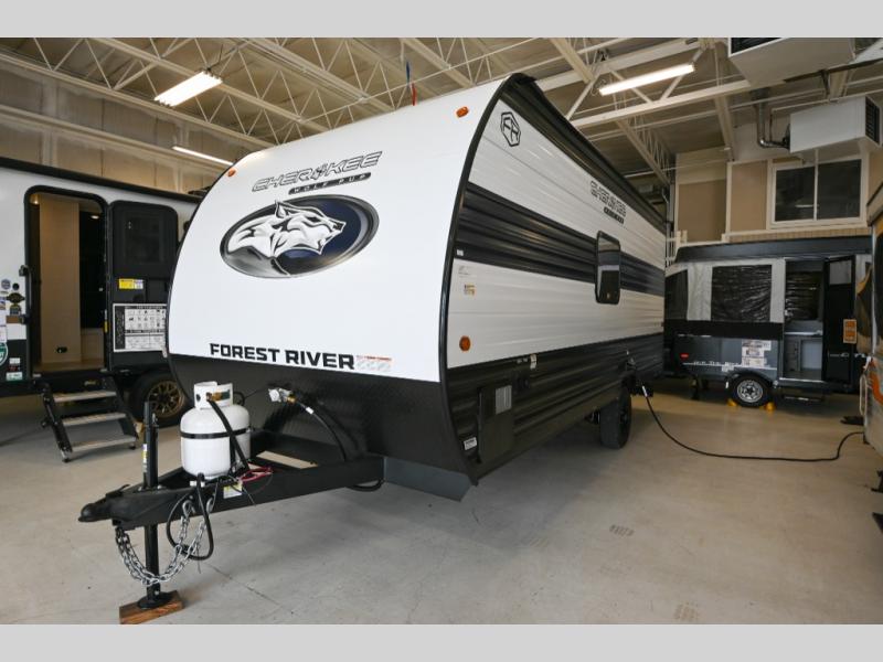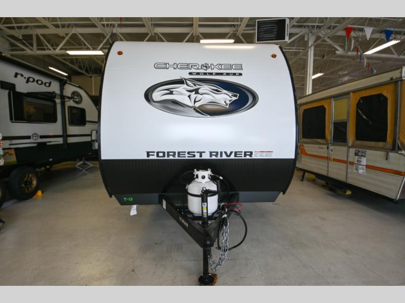 Each one of these Forest River Cherokee Wolf Pup travel trailers are lightweight and easy to tow! They are fully self contained with ample tank capacities, an abundance of storage space, and filled with at home amenities. The aerodynamic smooth radius front profile, the Power Gear frame technology, and the space saver rail design make them easier to maneuver. You will also appreciate the seamless roofing membrane with heat reflectivity to keep the sun from making your unit a hot box. The tongue and groove plywood flooring will hold up for years of fun and the USB charging stations help to keep your electronics at 100% while you're away. Come find the best model for you today!