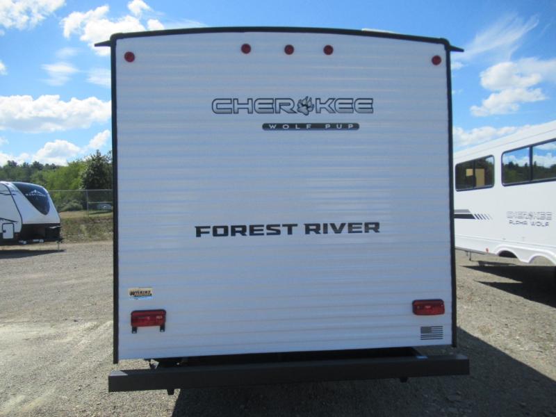 Each one of these Forest River Cherokee Wolf Pup travel trailers and toy hauler are lightweight and easy to tow! They are fully self-contained with ample tank capacities, an abundance of storage space, and filled with at home amenities. The full bath and kitchen amenities will make life at the campground easier than ever, and the outdoor patio awning will provide an inviting outdoor space!