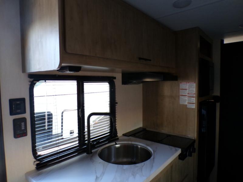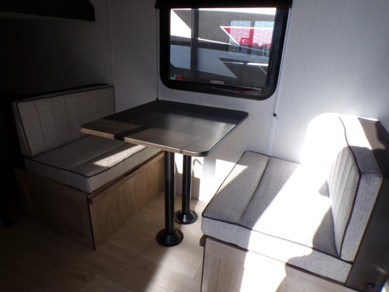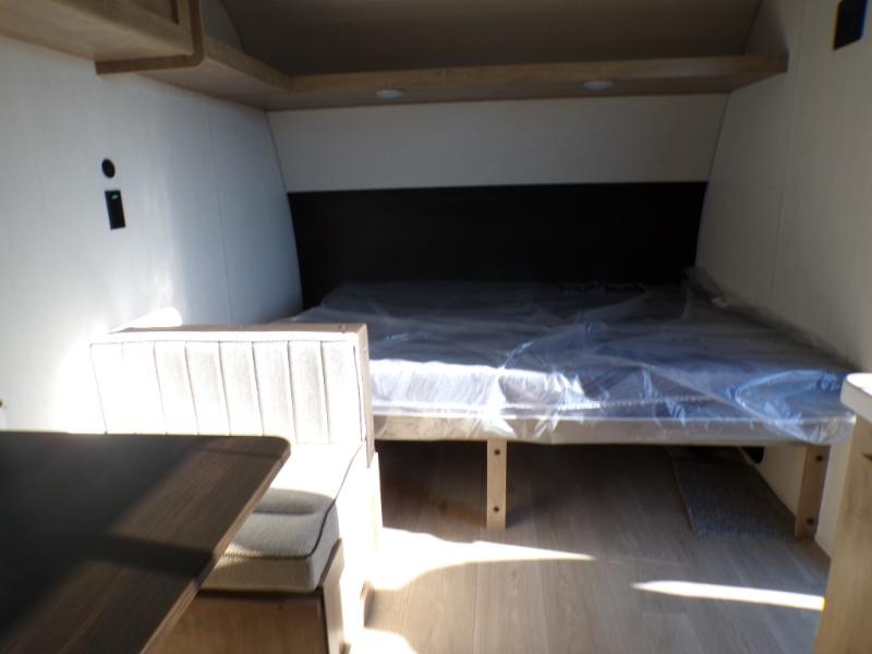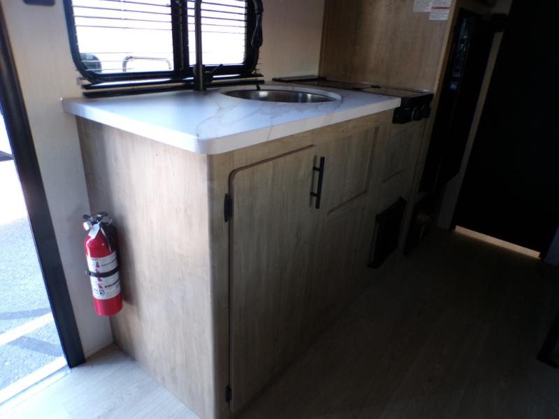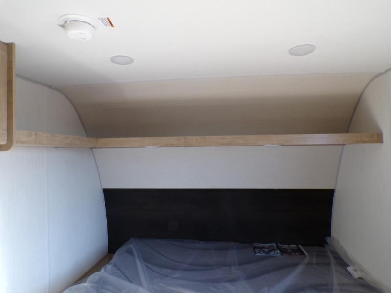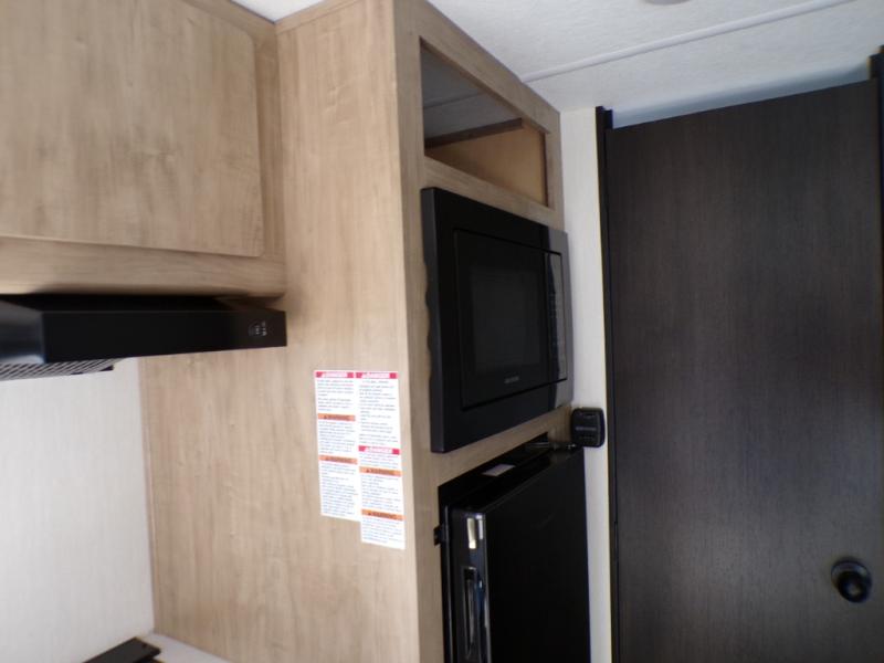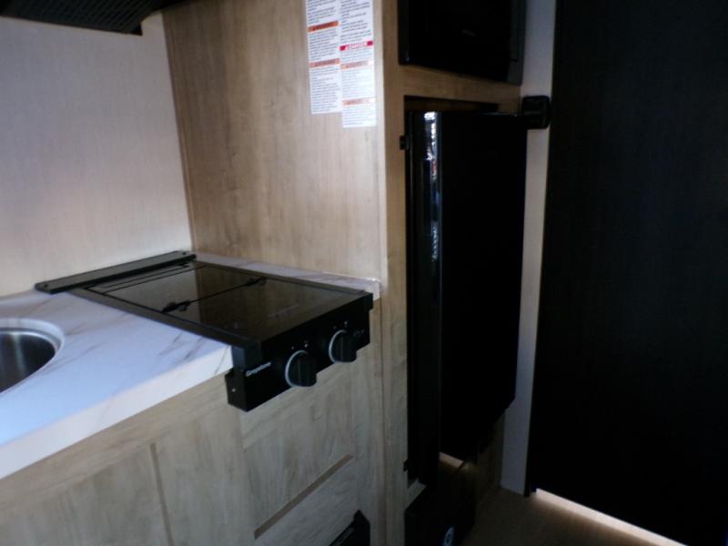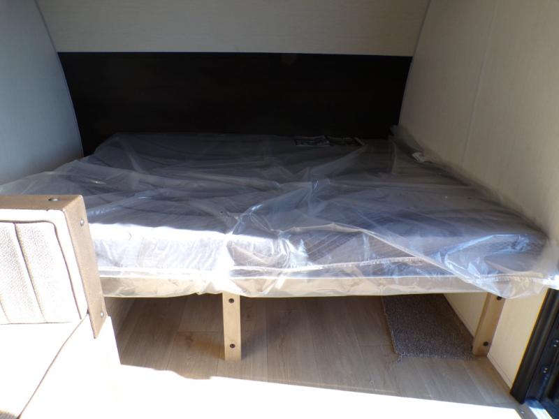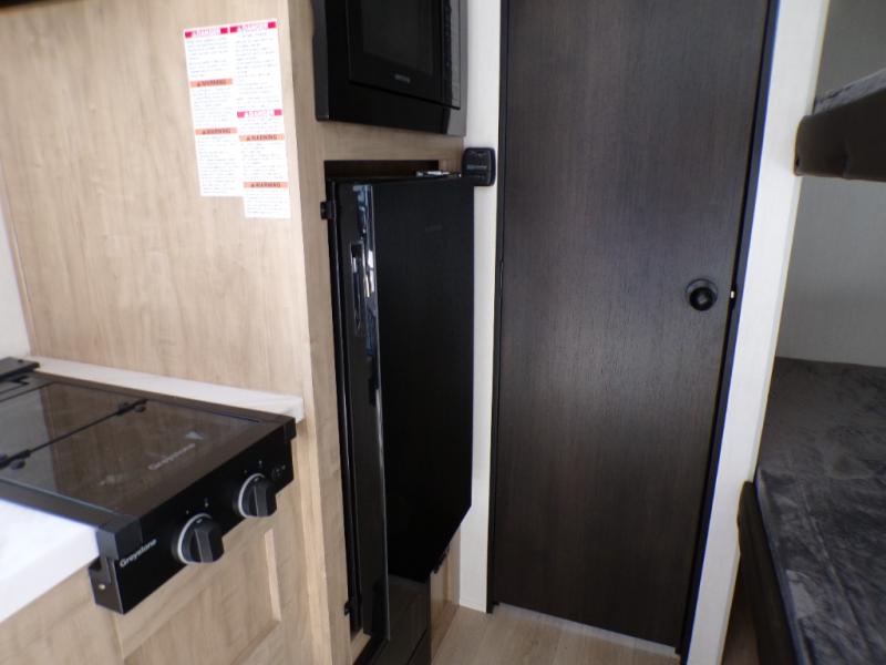 The whole family can sleep comfortably in this travel trailer! It has a set of bunk beds for the kids to sleep on, and you can sleep comfortably on the front queen bed with overhead cabinets and a shelf. The chef will enjoy preparing their best home cooked meals with the cooktop, and you can dine at the booth dinette. And the private bath onboard means you won't have to leave your camper in the middle of the night!