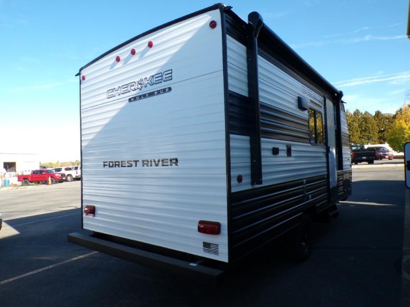 Each one of these Forest River Cherokee Wolf Pup travel trailers and toy hauler are lightweight and easy to tow! They are fully self-contained with ample tank capacities, an abundance of storage space, and filled with at home amenities. The full bath and kitchen amenities will make life at the campground easier than ever, and the outdoor patio awning will provide an inviting outdoor space!
