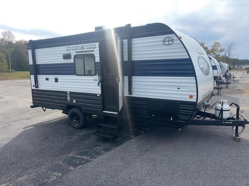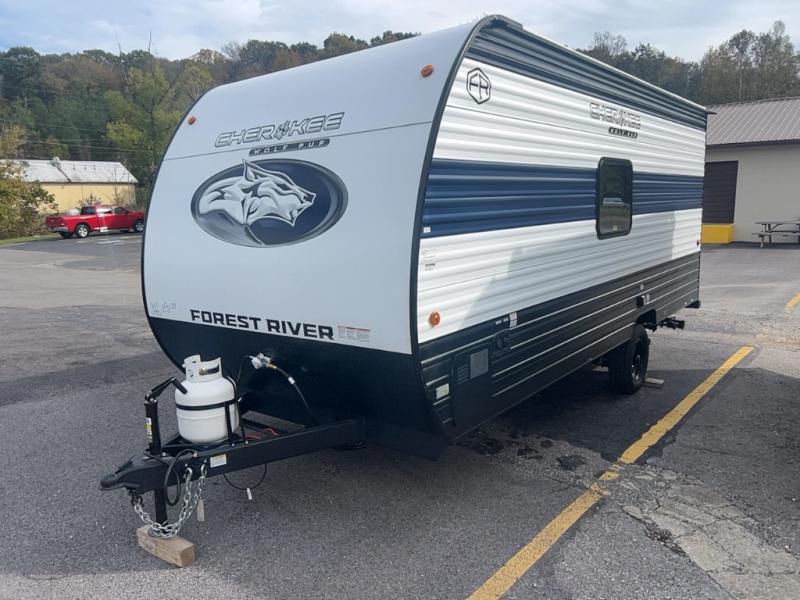Each one of these Forest River Cherokee Wolf Pup travel trailers are lightweight and easy to tow! They are fully self contained with ample tank capacities, an abundance of storage space, and filled with at home amenities. The aerodynamic smooth radius front profile, the Power Gear frame technology, and the space saver rail design make them easier to maneuver. You will also appreciate the seamless roofing membrane with heat reflectivity to keep the sun from making your unit a hot box. The tongue and groove plywood flooring will hold up for years of fun and the USB charging stations help to keep your electronics at 100% while you're away. Come find the best model for you today!
