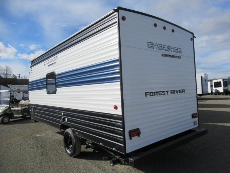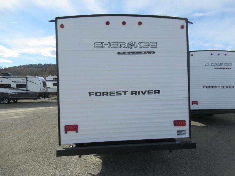 Each one of these Forest River Cherokee Wolf Pup travel trailers and toy hauler are lightweight and easy to tow! They are fully self-contained with ample tank capacities, an abundance of storage space, and filled with at home amenities. The full bath and kitchen amenities will make life at the campground easier than ever, and the outdoor patio awning will provide an inviting outdoor space!
